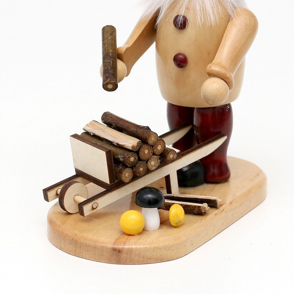 Holz-Räuchermann Waldwichtel Rauchfigur für Räucherkerzen Wählen Sie aus folgenden Motiven: A - Holzhacker B - Schubkarre C - Pilzsammler D - Lagerfeuer Größe je Rauchfigur ca. 16,5 x 9 x 19 cm Witzige Geschenkidee - Weihnachten, Geburtstag, Einzug ... Passende Räucherkerzen finden Sie hier: Mrs Mim
