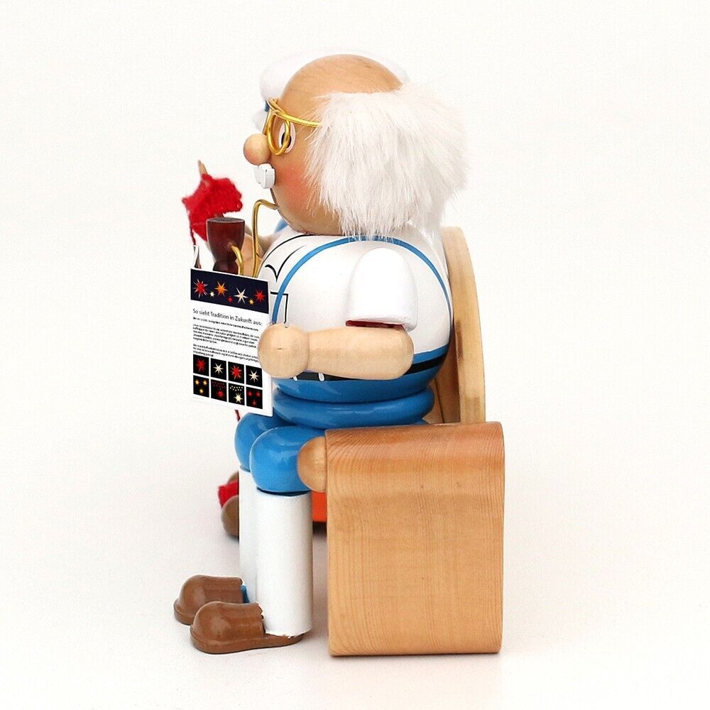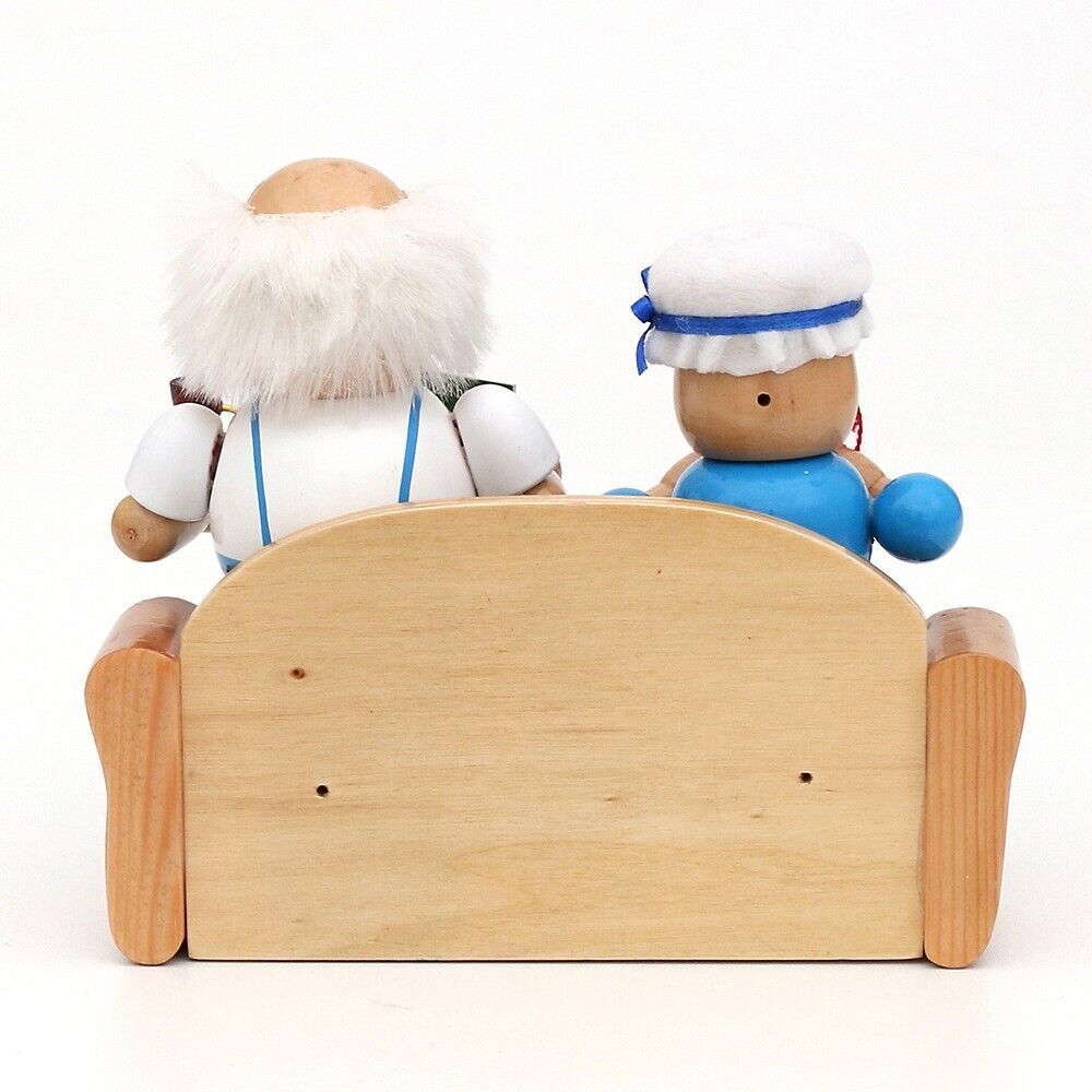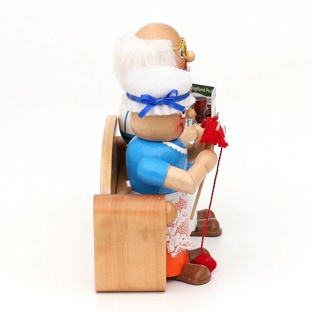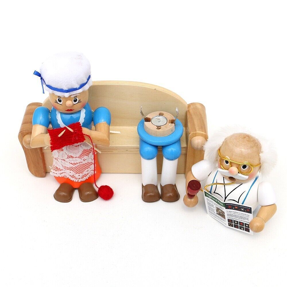 Holz Rauchfigur "Oma & Opa" auf Sofa Räuchermännchen Zeitung Stricken