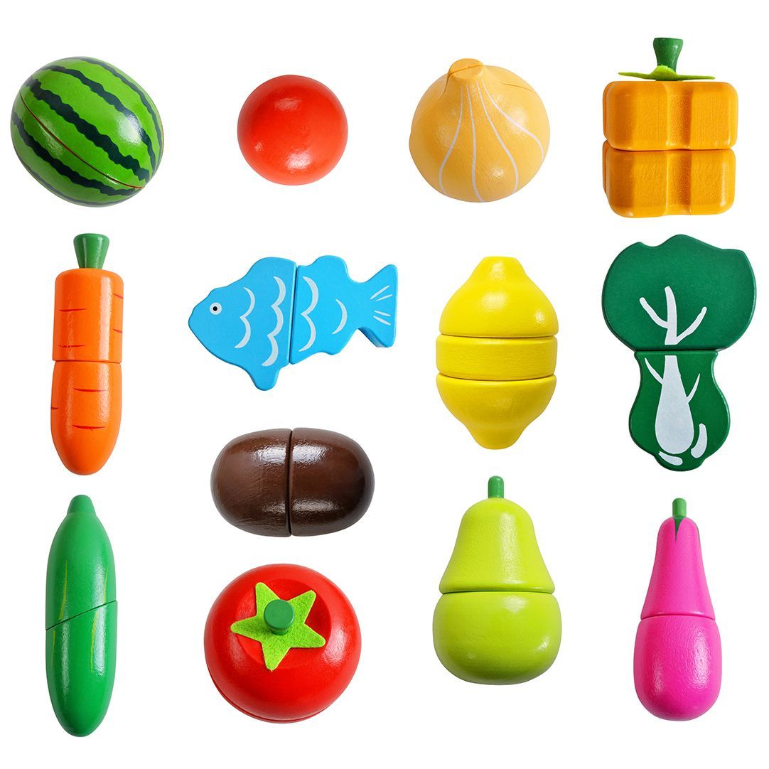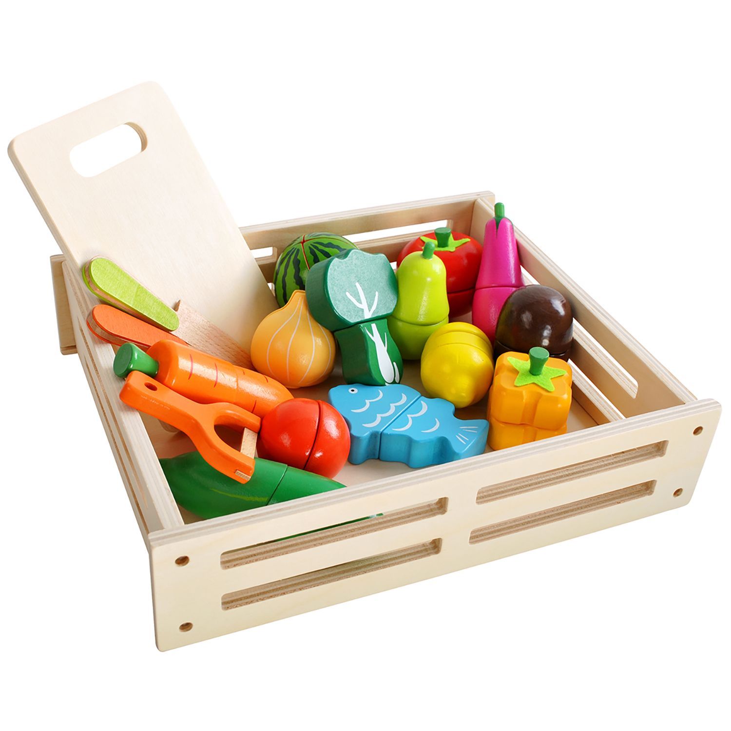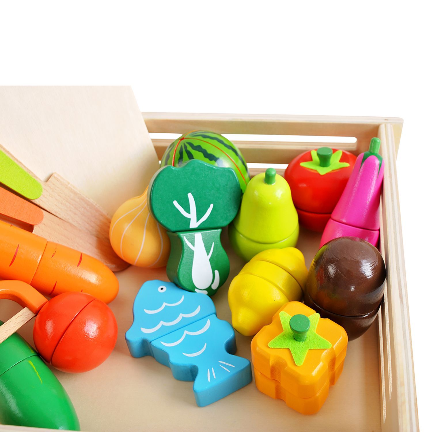 Holz Schneideset Kinder 34-tlg. Obst Gemüse Spielzeug Küche Montessori