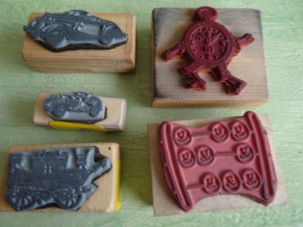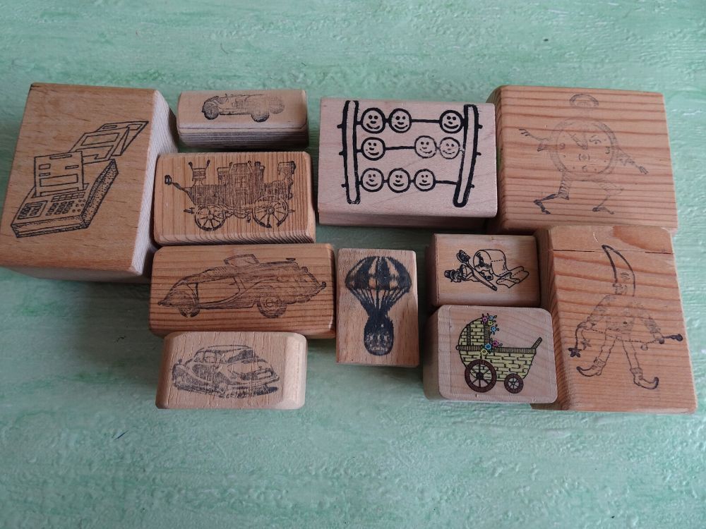Holz-Stempel Autos Kinderwagen Ballon Rechner Uhr..... sonstige....