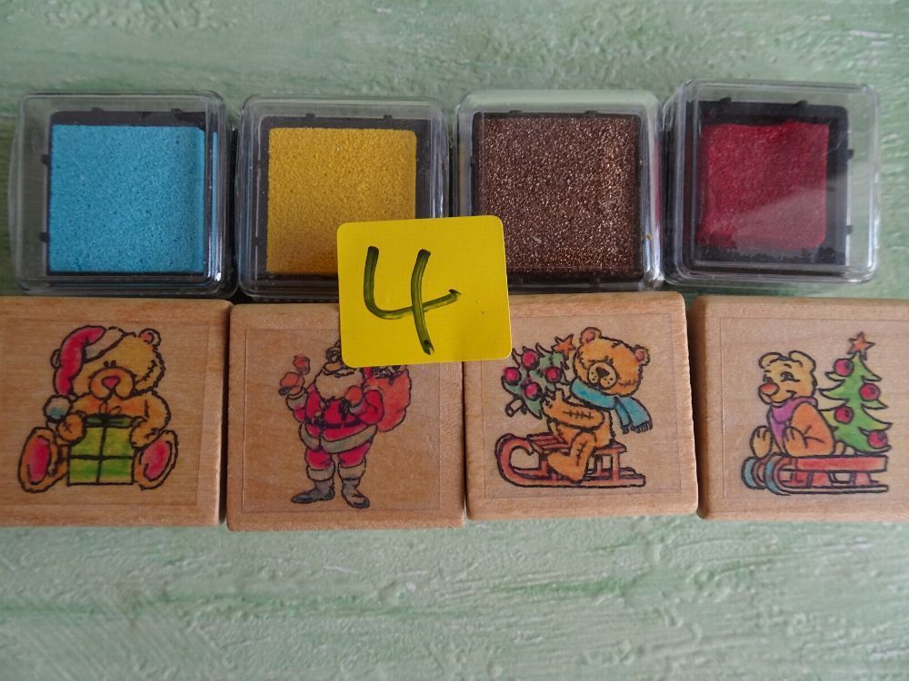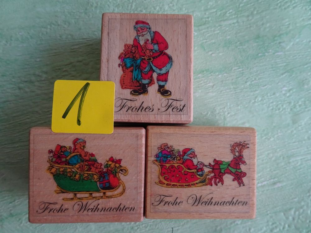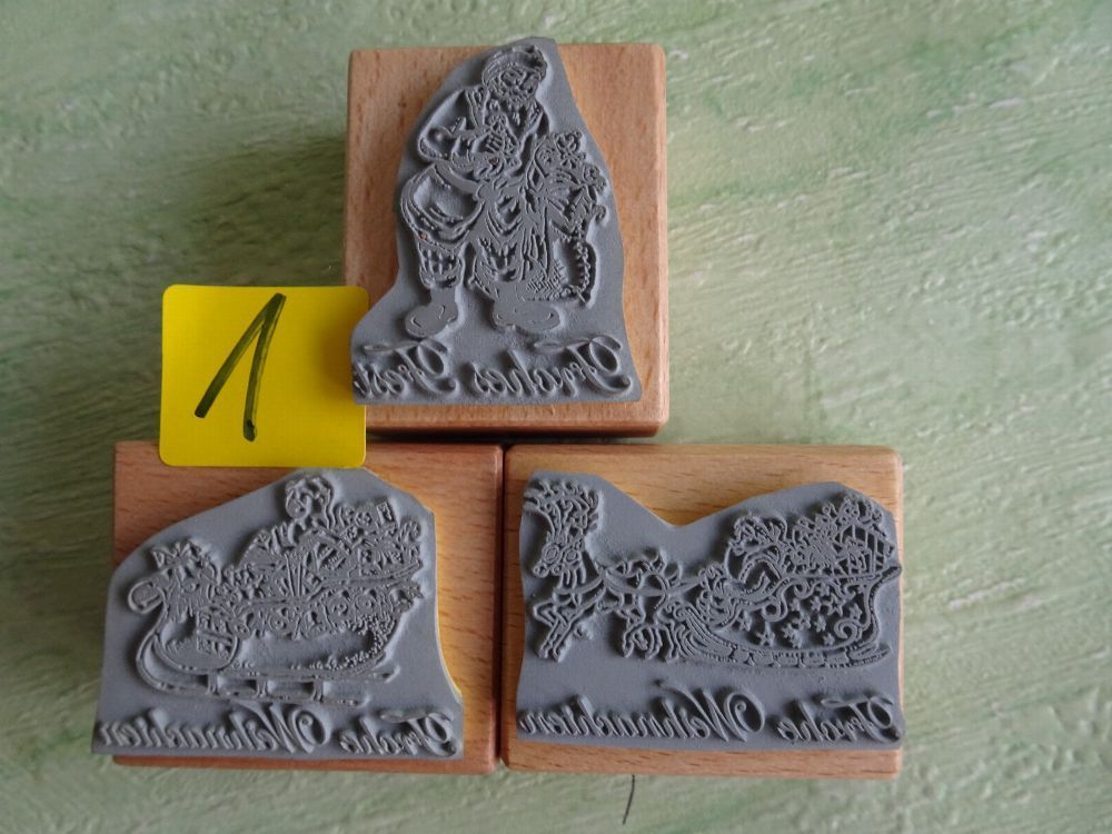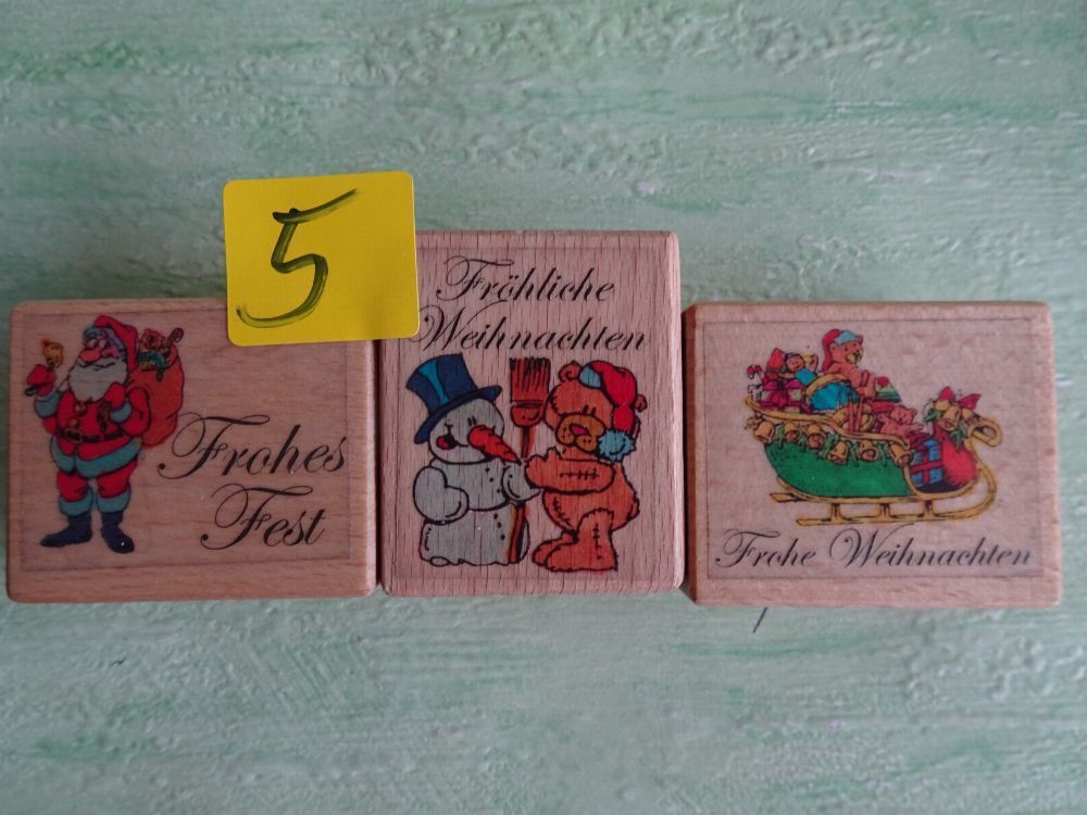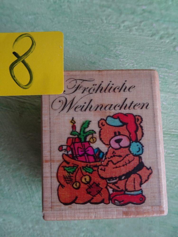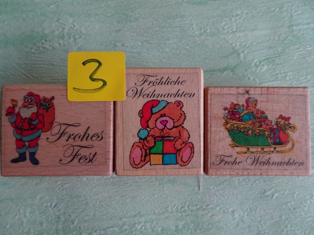 Holz-Stempel Frohe Weihnachten Weihnachtsmann Schriften Engel Teddy-Bär Schneemann