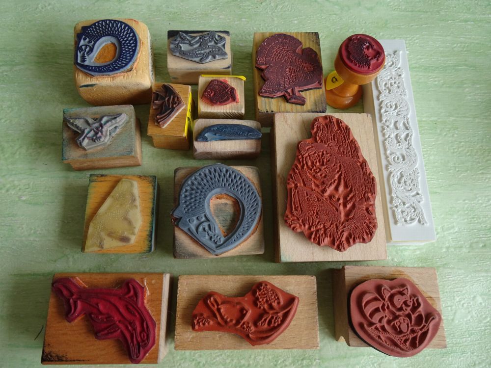 Holz-Stempel Tiere Muscheln Adler Fische Delphin Löwe Tiger......