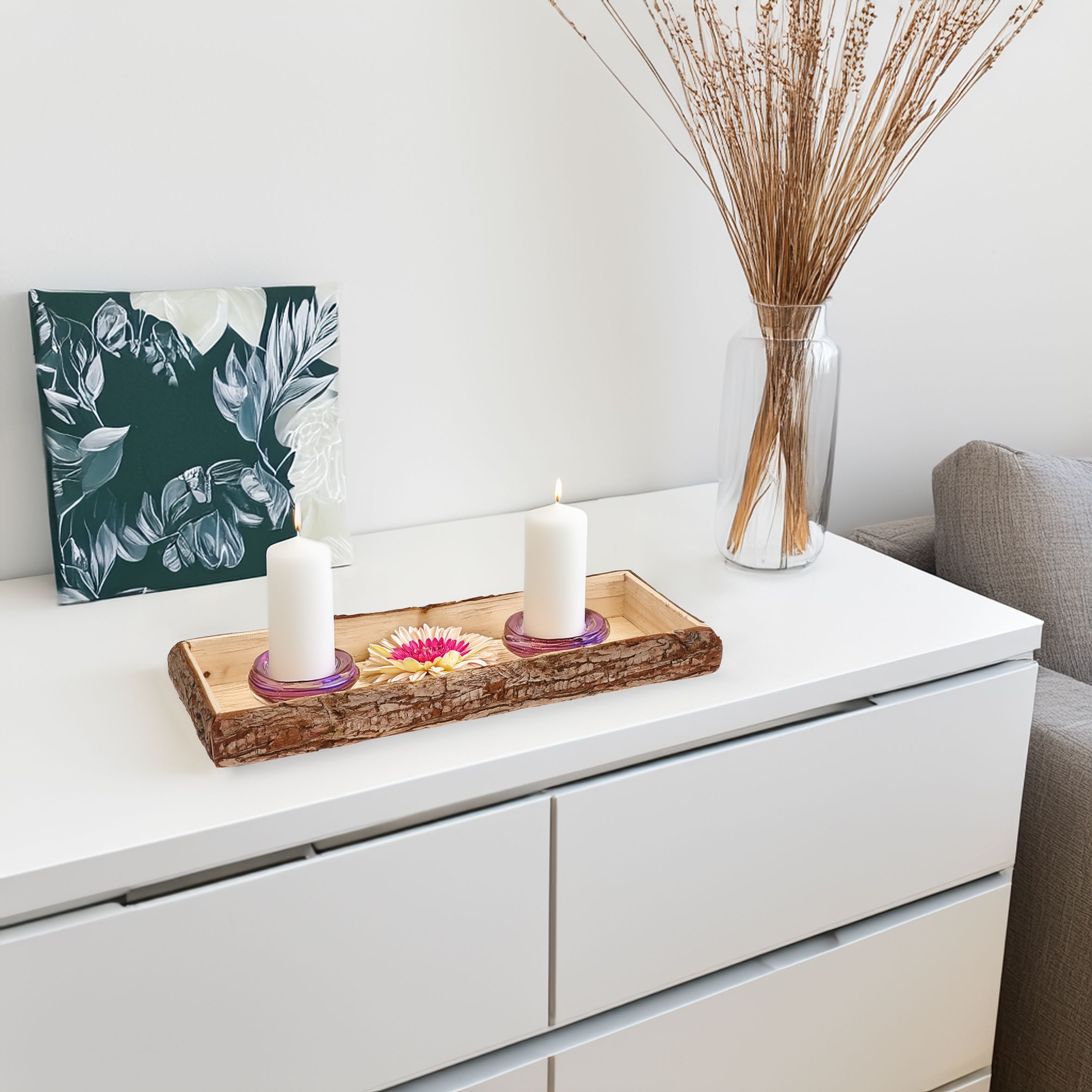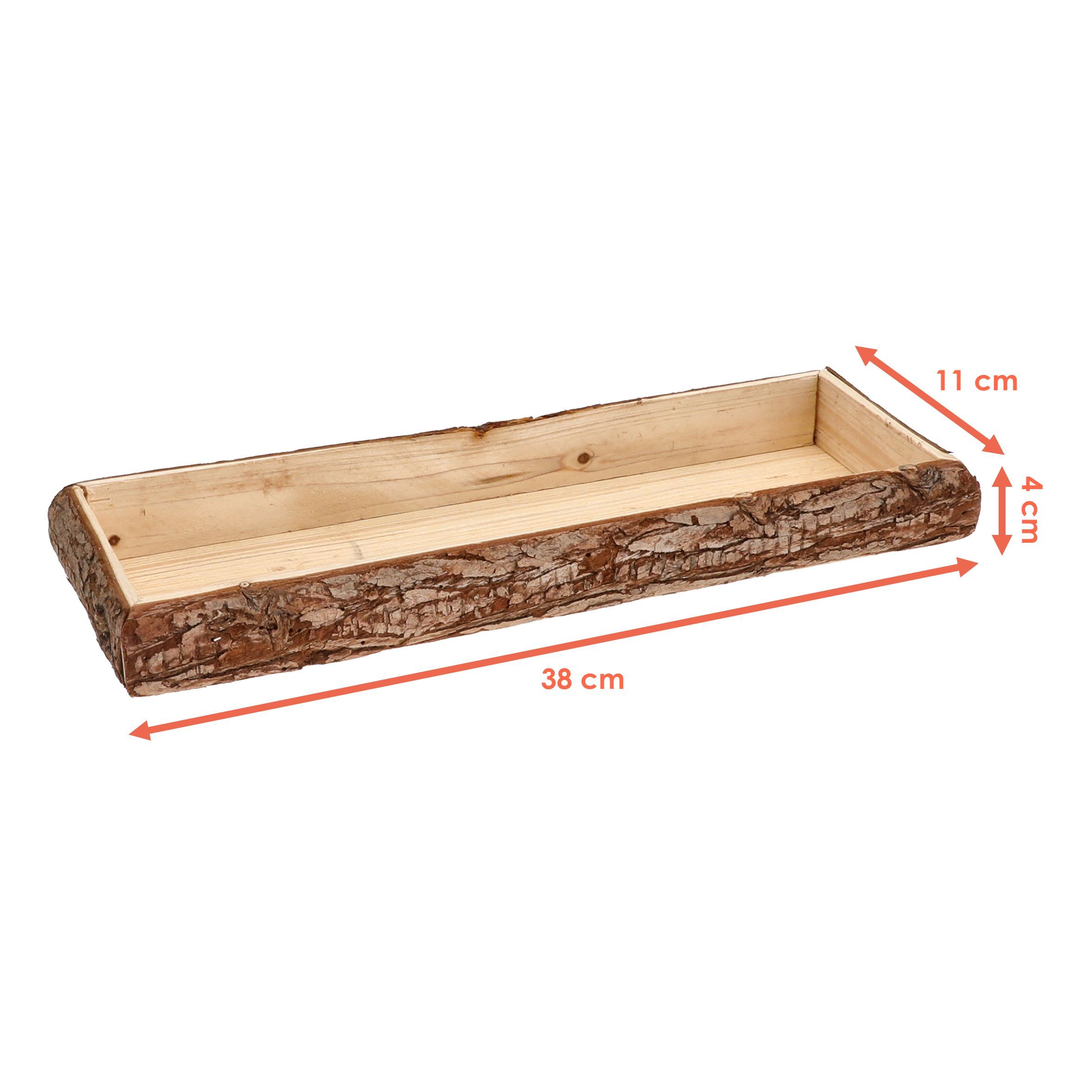 Holz Tablett mit Baum Rinde klein - 38 x 11 cm - Tisch Deko Kerzen Brett eckig