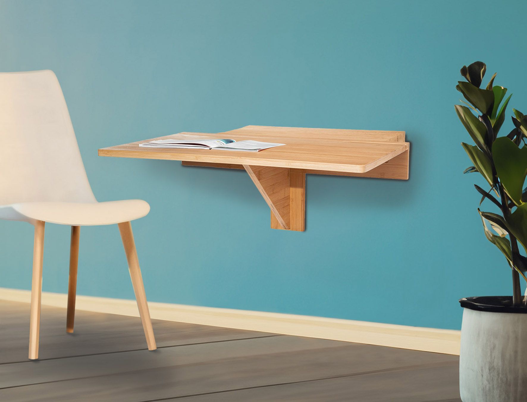 Klappbarer und robuster Holz Hängetisch platzsparend zur Wandmontage