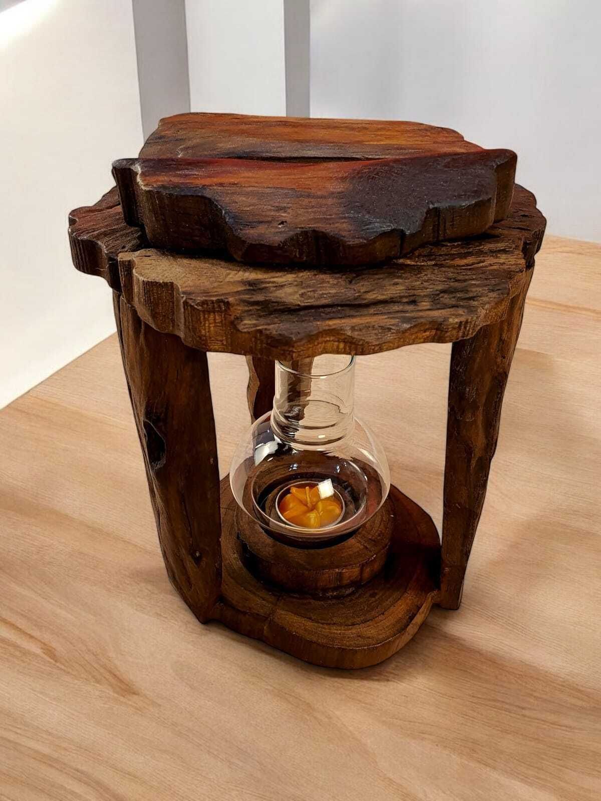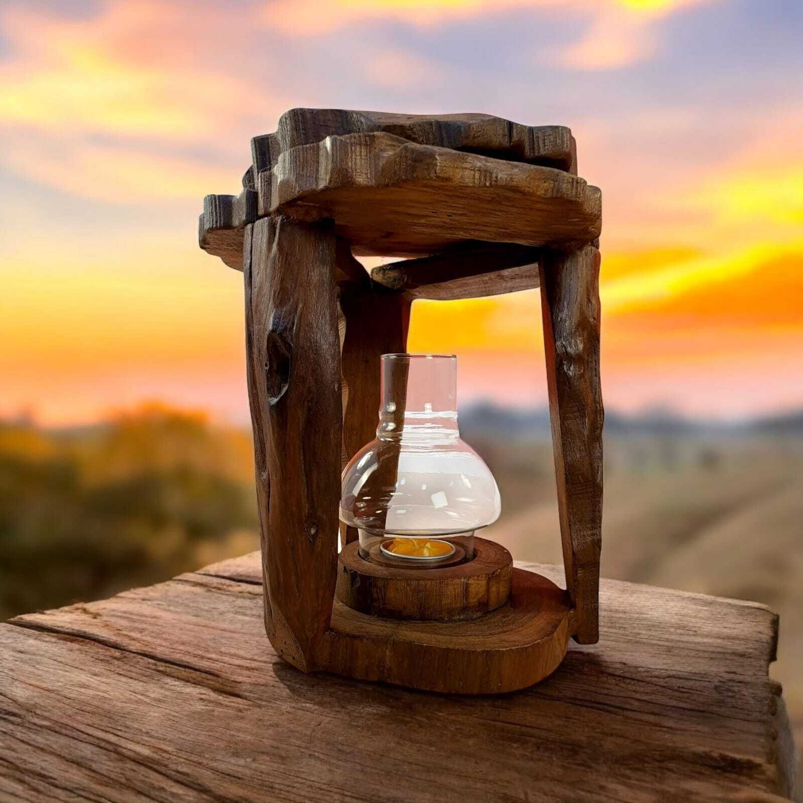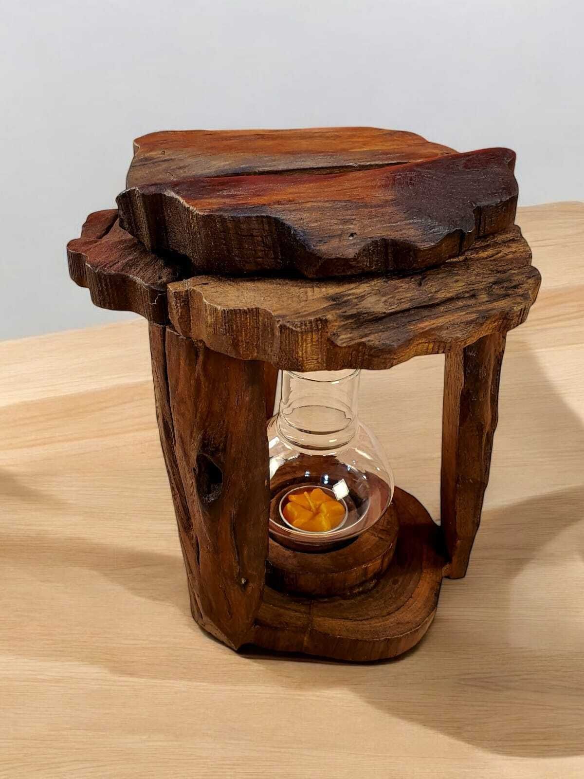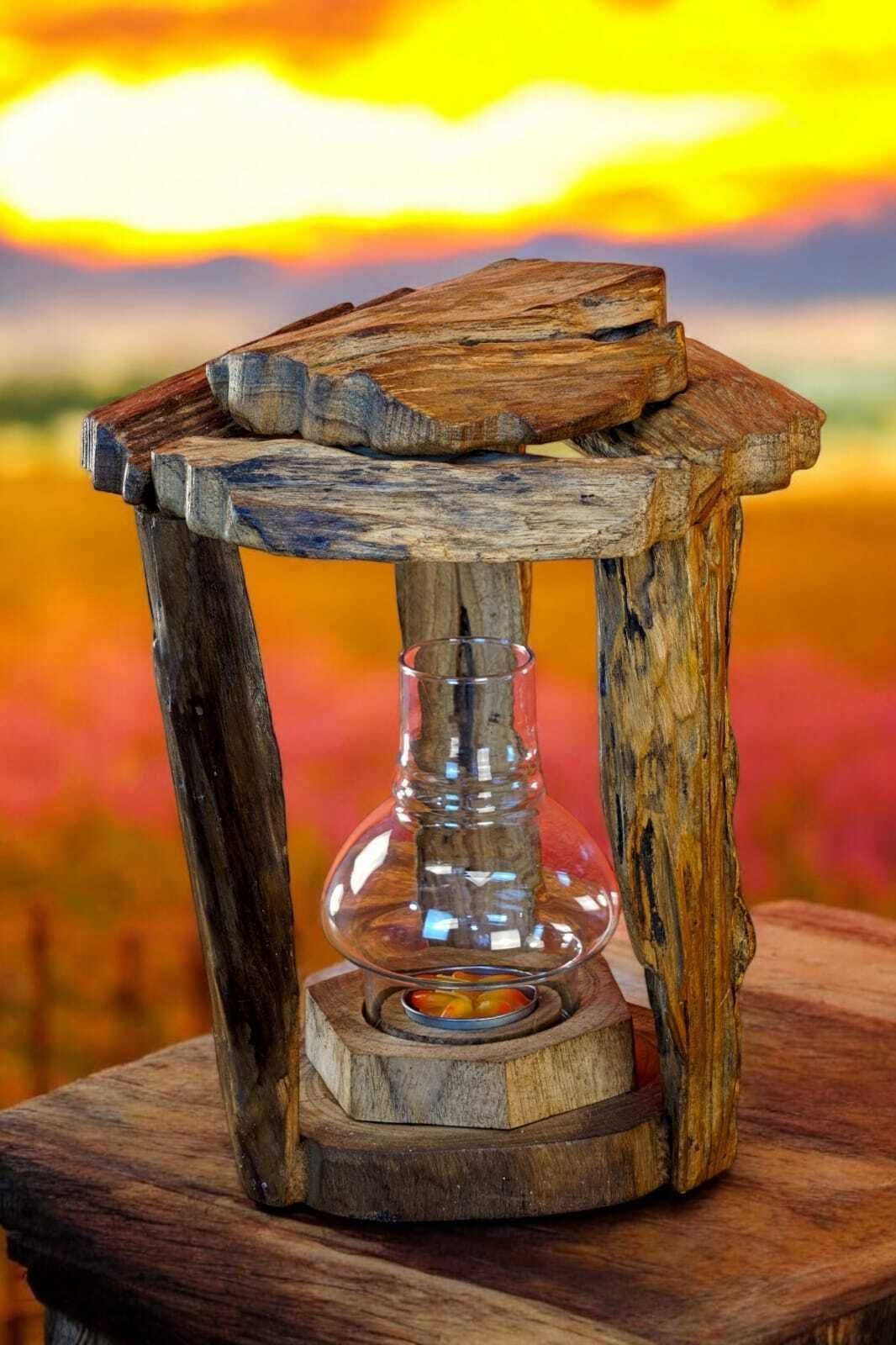 Holz Windlicht Wurzelholz Laterne Teelicht Kerzen Halter Wintergarten Garten neu