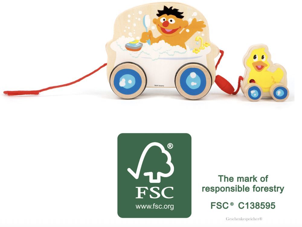 small foot Holz Ziehtier Badewanne Quietsche Ente Sesamstrasse Ernie Kinder Spielzeug Holz 13 cm
