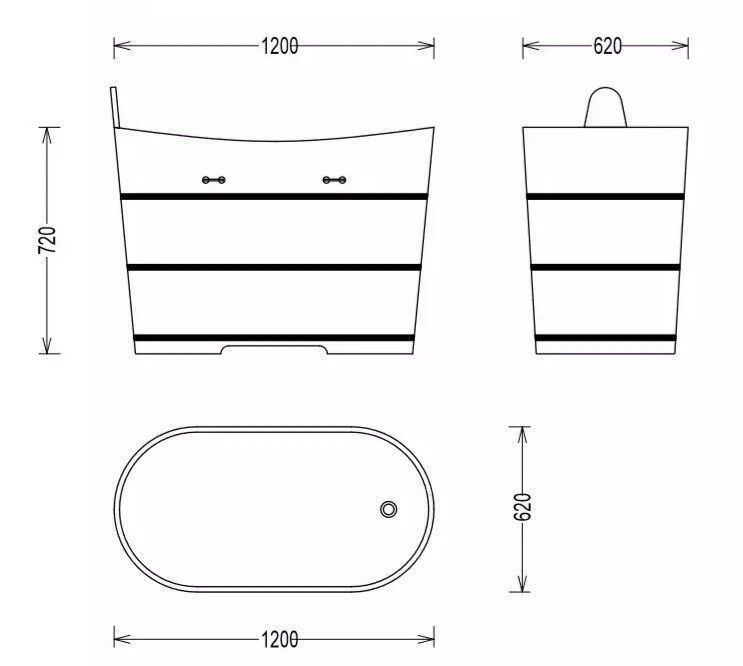 Holzbadewanne Bern 120×62cm – Freistehend, Ergonomisch, Naturholz, Wellness