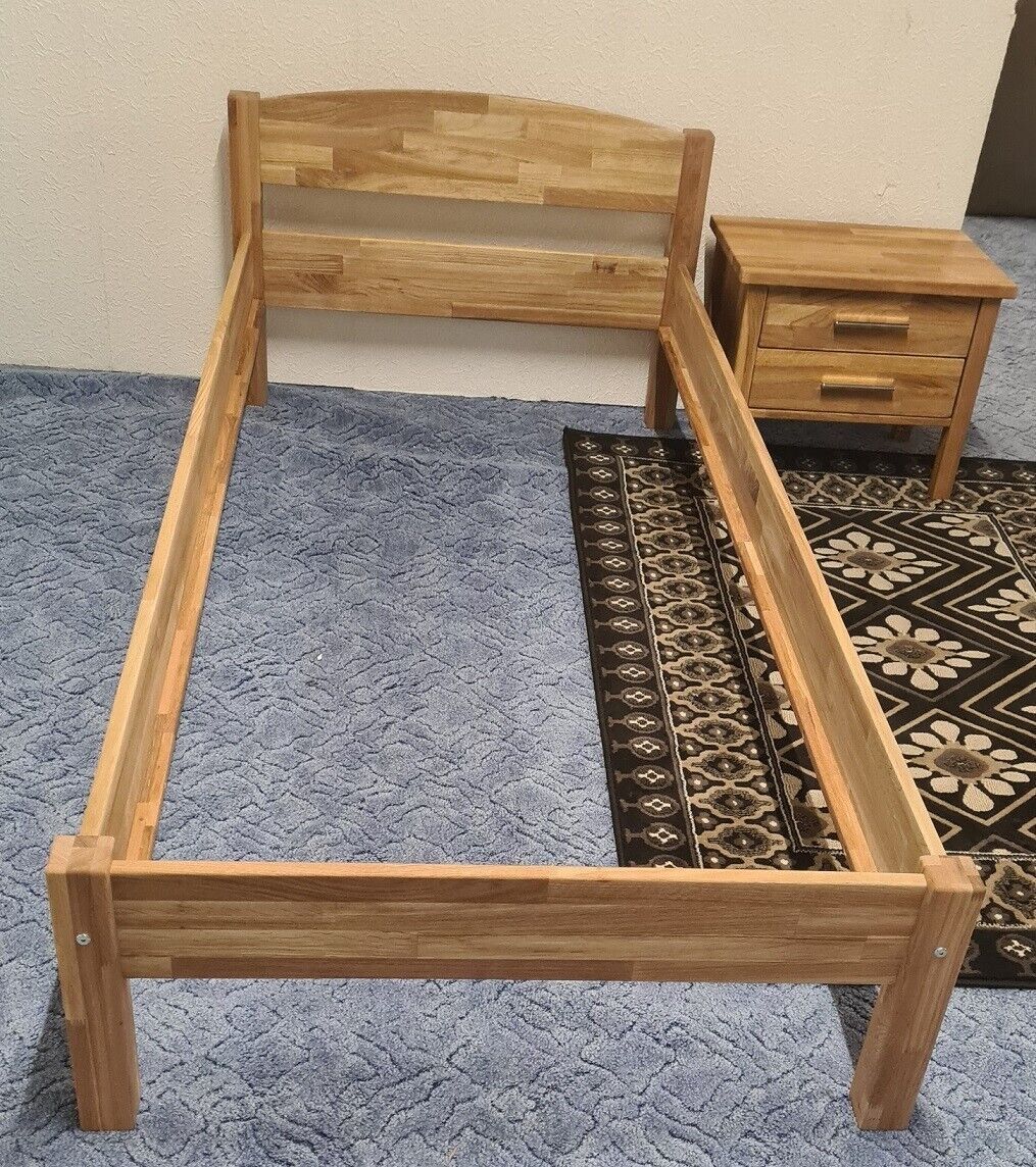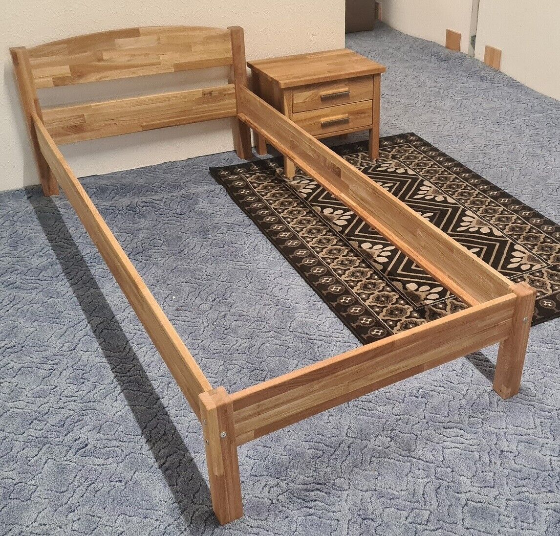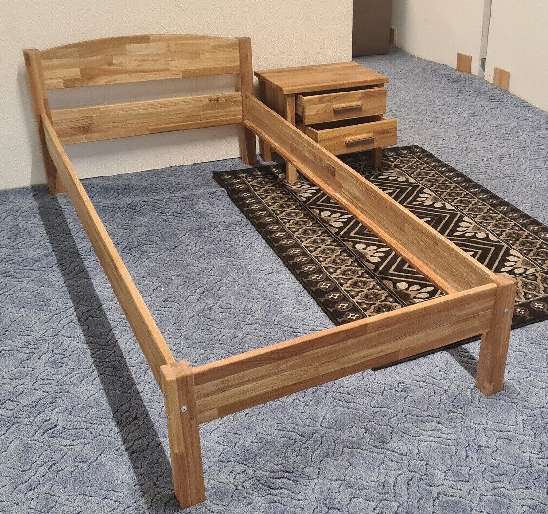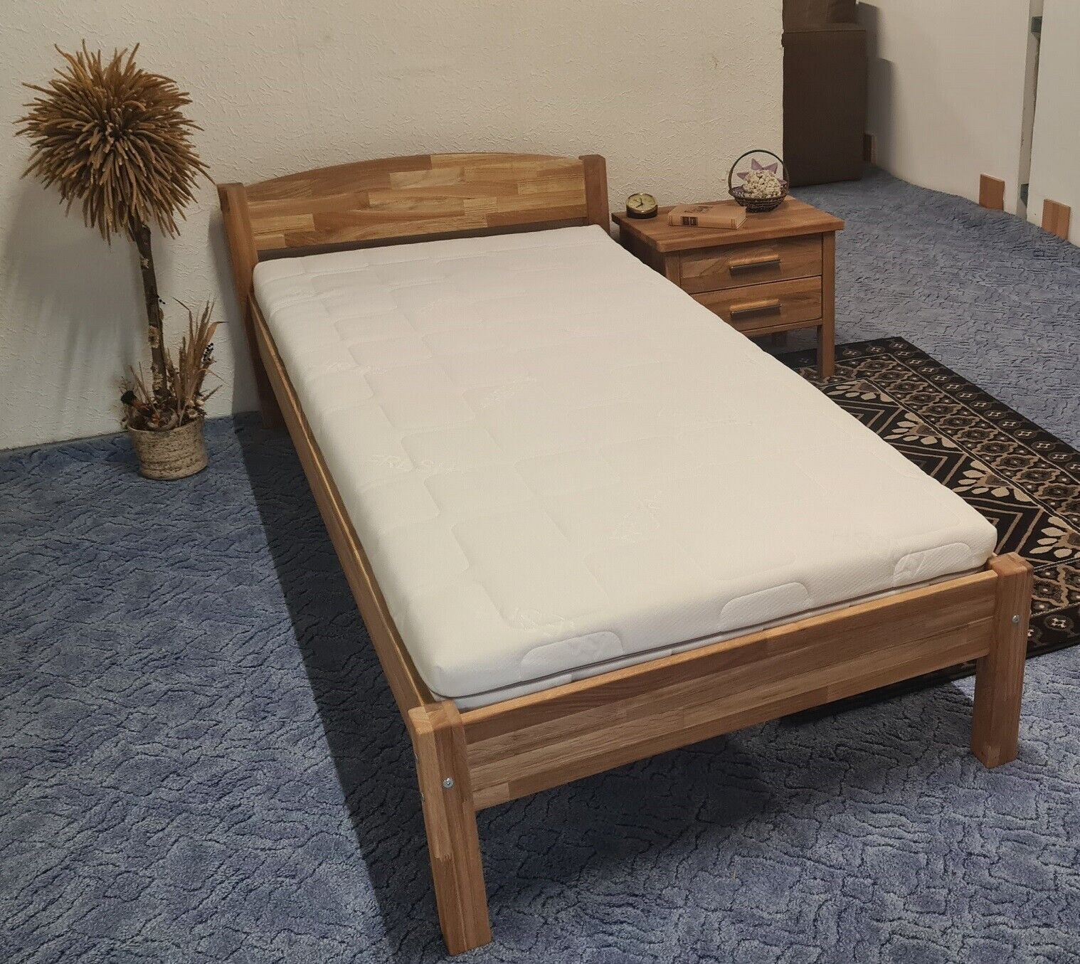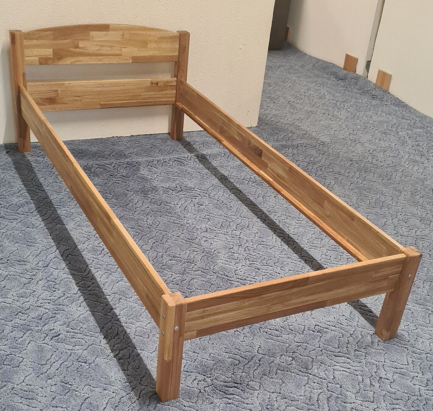 Holzbett 100x200 cm Eiche massivholz geölt Einzelbett Kinderbett Seniorenbett
