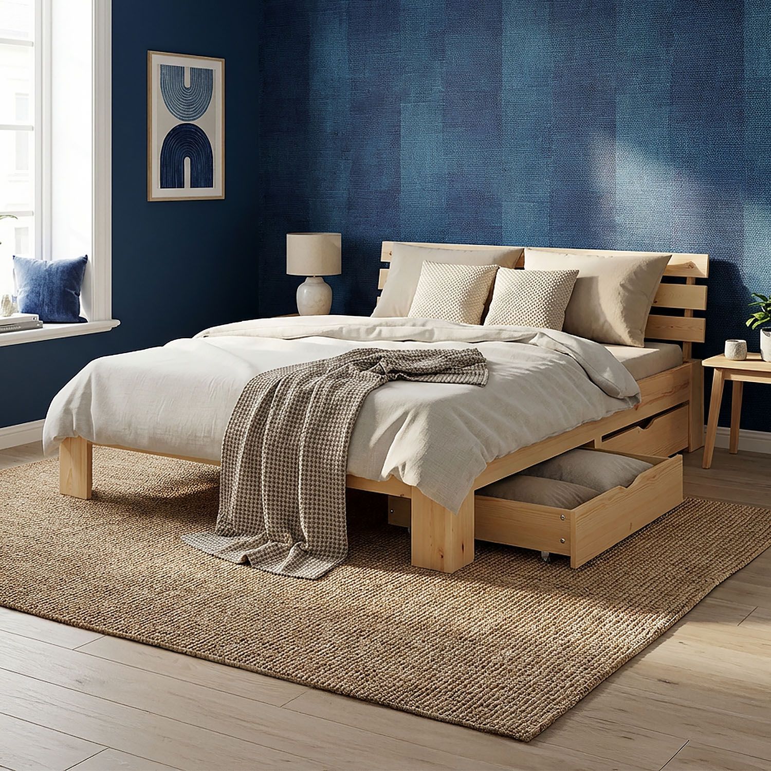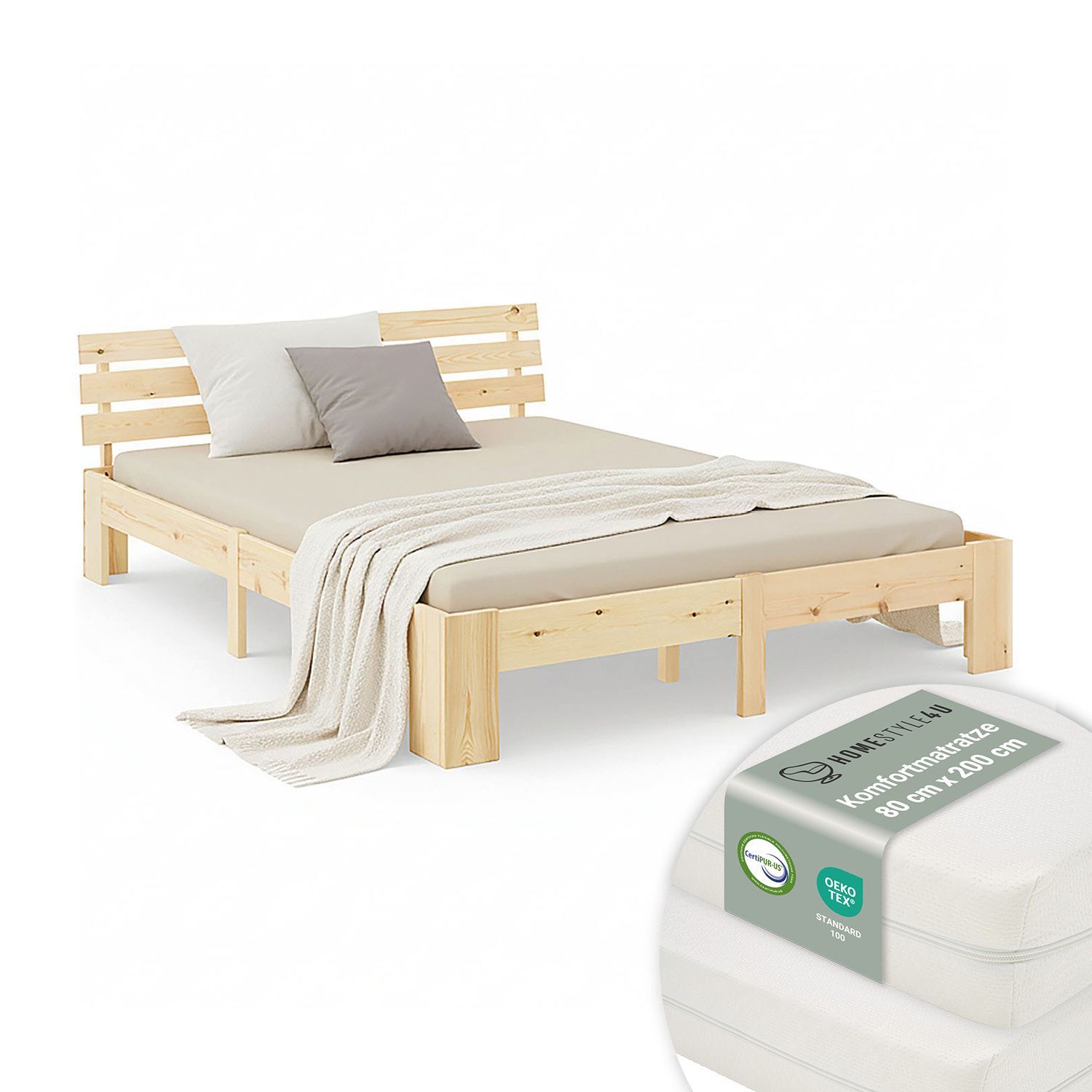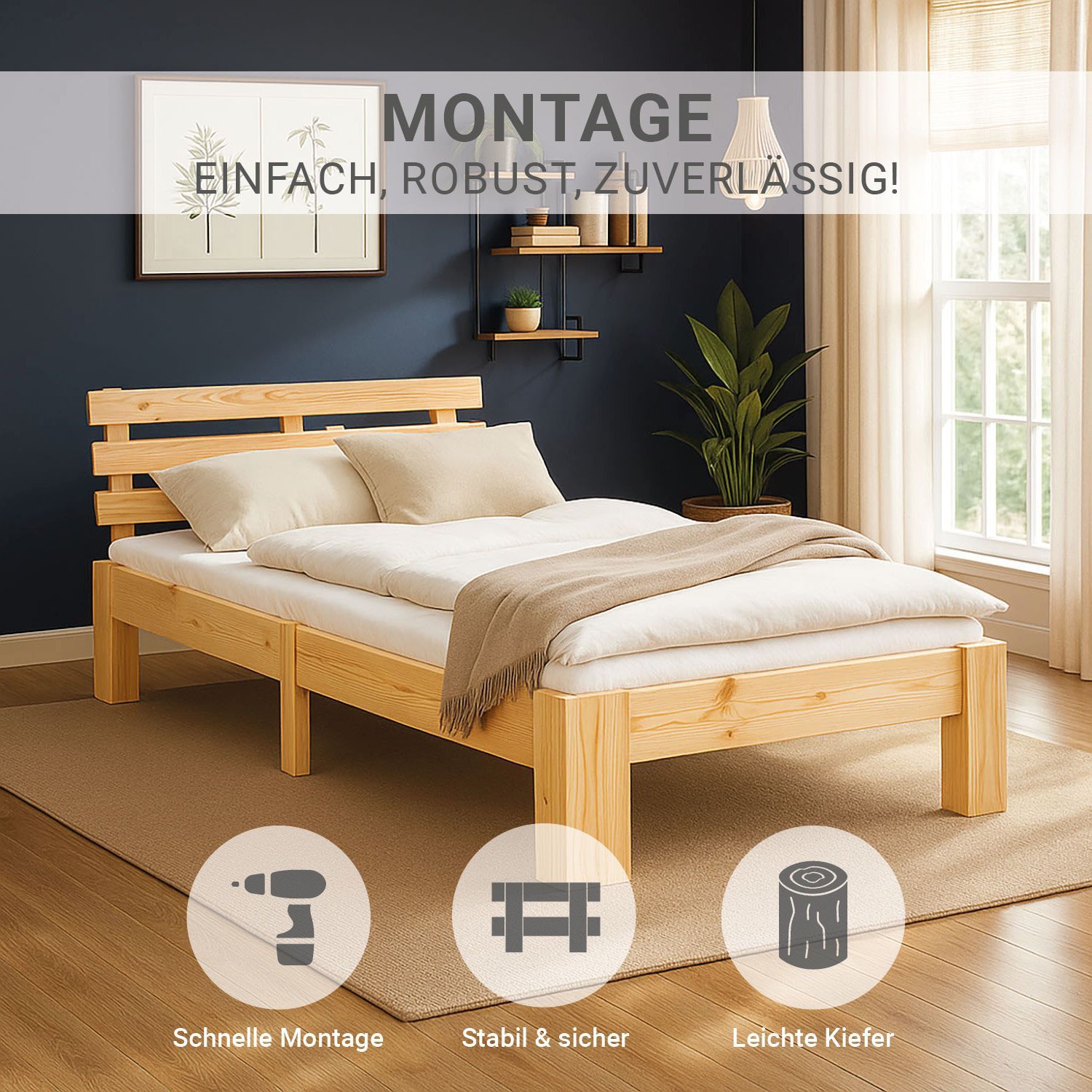 Holzbett 90 - 180 x200 cm Bett Natur Weiß Grau Einzelbett Doppelbett Holz Massiv