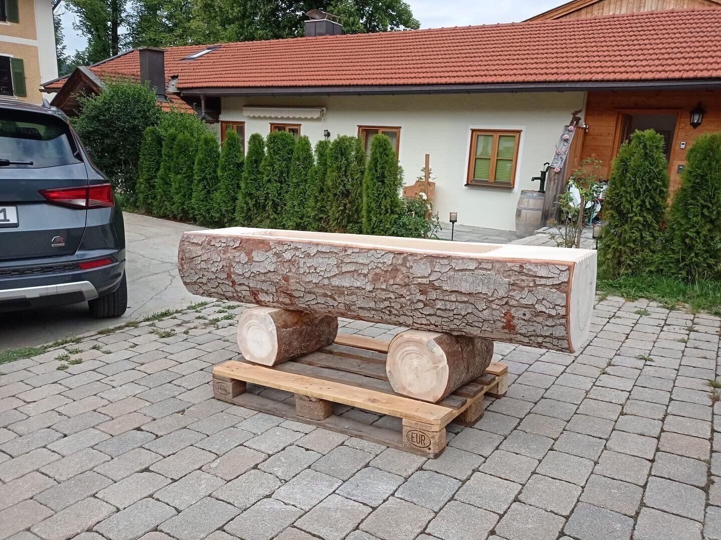 Holzbrunnen Wendelstein Wassertrog mit Rinde Garten Blumen 250 cm x ca. 53 cm