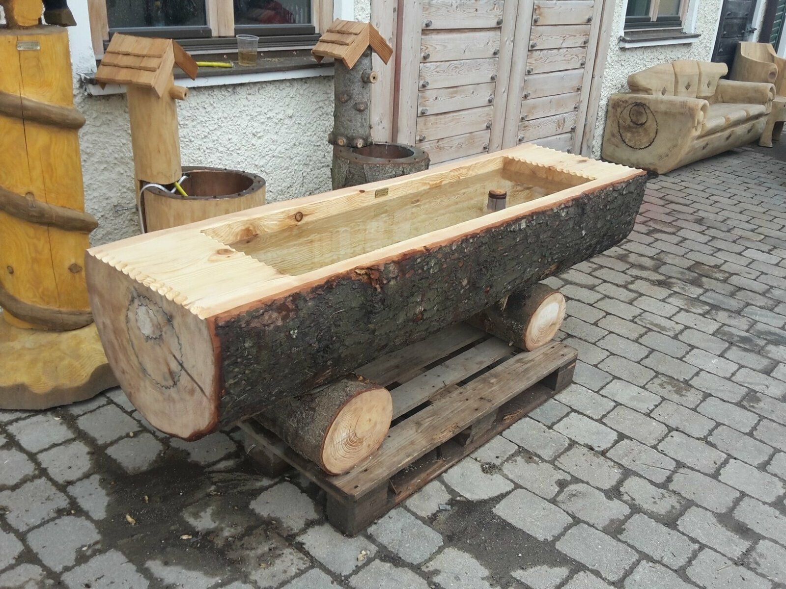 Holzbrunnen Wendelstein Wassertrog mit Rinde Garten Blumen 100 cm x ca. 35 cm