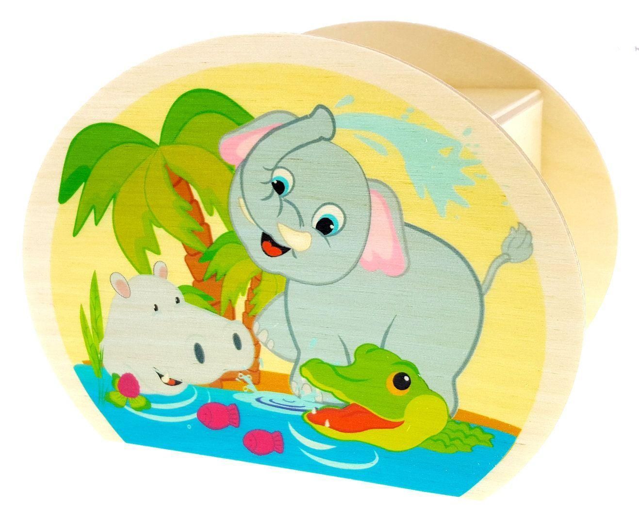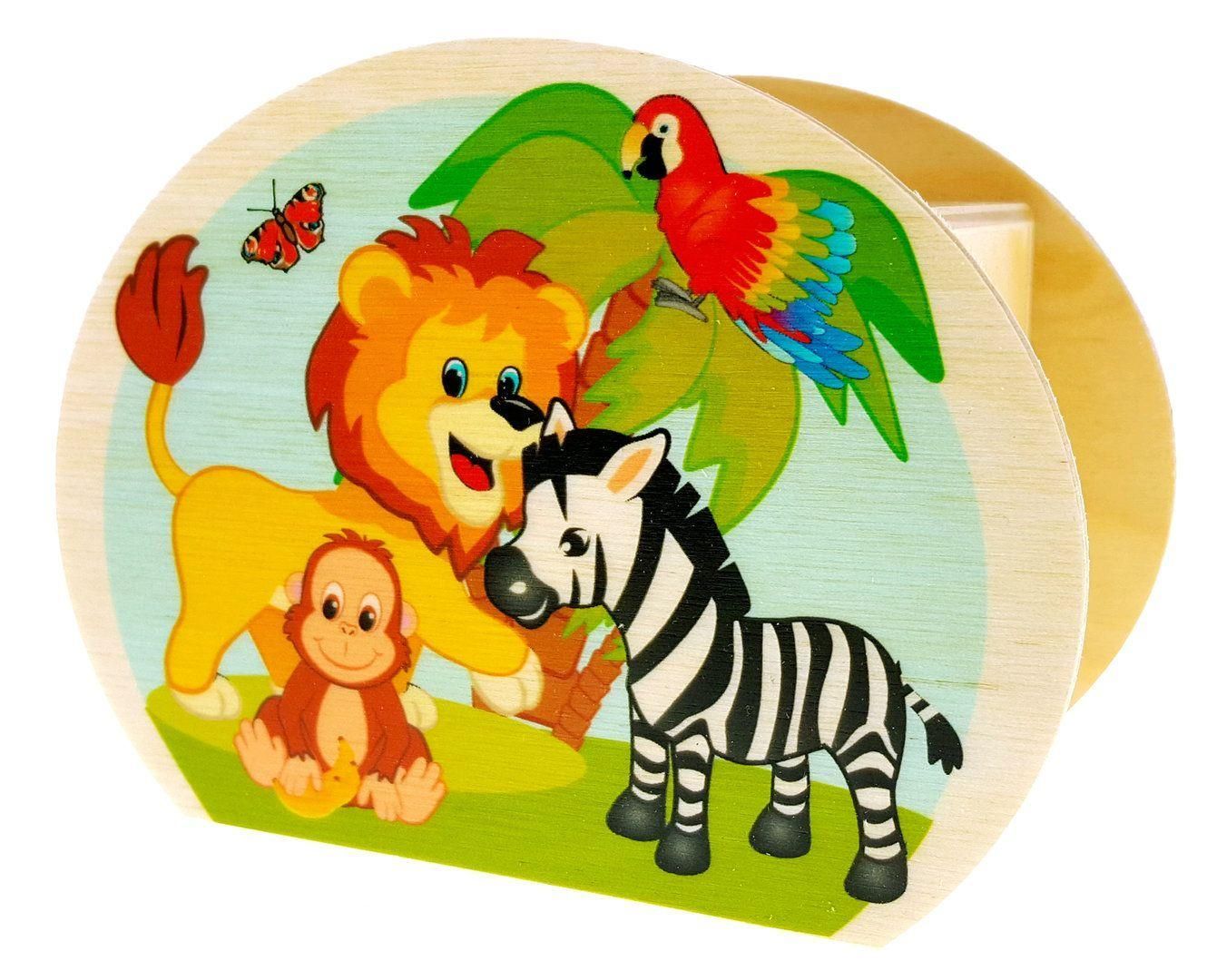 Holzdekoration Spardose Dschungeltiere BxLxH 65x115x85mm NEU Sparbüchse Sparen