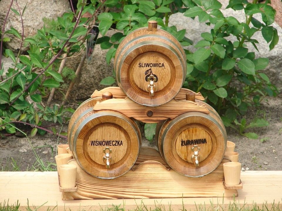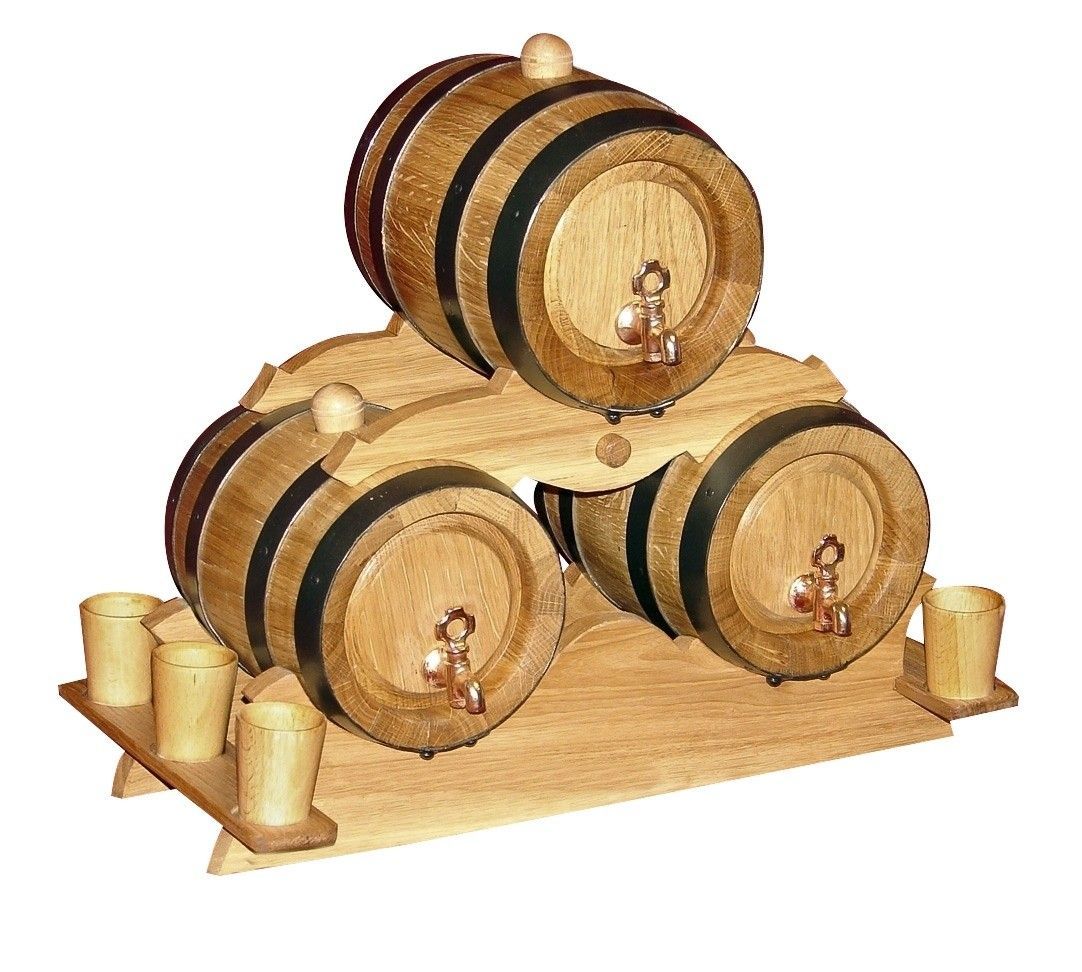 Pyramide aus drei Fässern 2, 3, oder 5 Liter + 6 Becher GRAVUR MÖGLICHKEIT!! Machen Sie sich oder Ihren Freunden ein einzigartiges Geschenk!!! Achtung ! Fass 2 Liter max 2 Wörter möglich. Lieferumfang: 3x 2, 3, oder 5 Liter Holzfass 6x Eiche Becher Ständer 3x Stöpsel 3x Hahn aus Messing Mehr Holzmöbel und Deko auf unsere Seite www.fimarshop.de