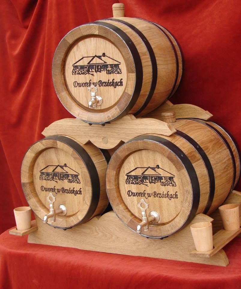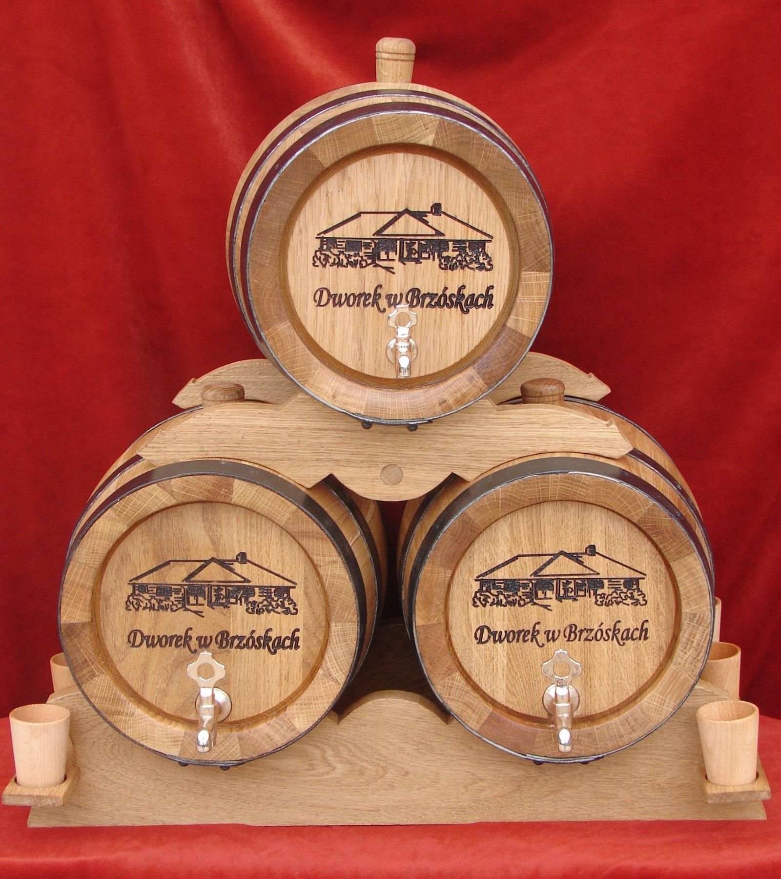 Holzfass Pyramide aus drei Fässer + 6 Becher Weinfass Eichenfass 2L 3L 5Liter Gravur