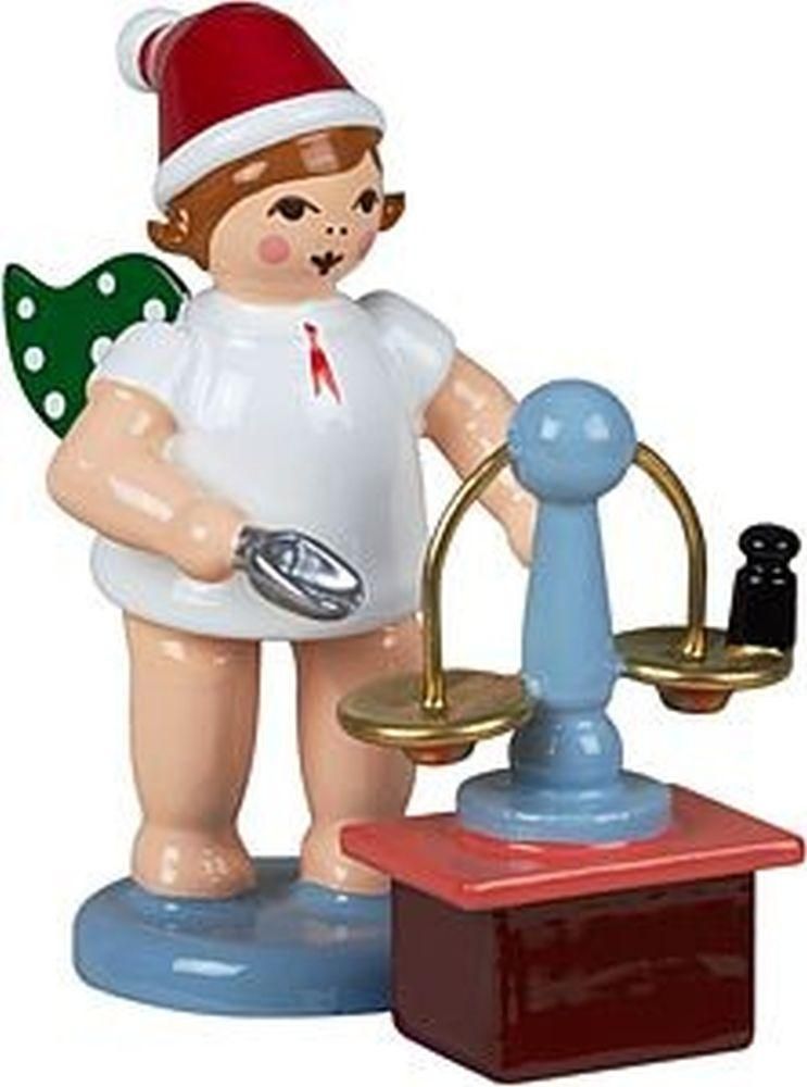 • Holzfigur Bäckerengel mit Waage und Mütze Höhe 6cm NEU Holzengel Instrument Seiff