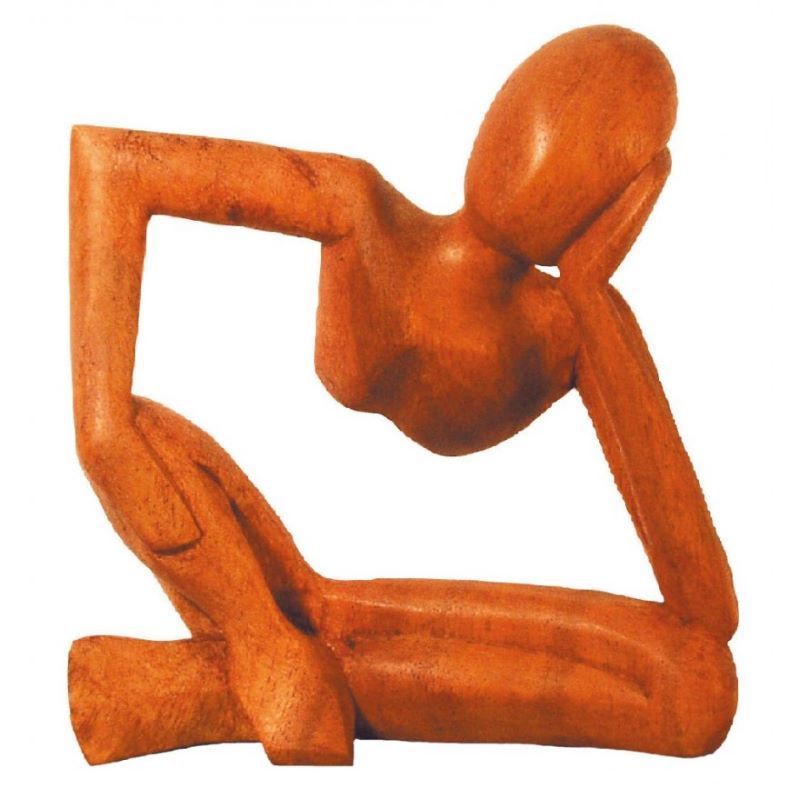 Saraswati Holzfigur DENKER nach links gelehnt braun 15 cm Figur Statue Skulptur Feng-Shui