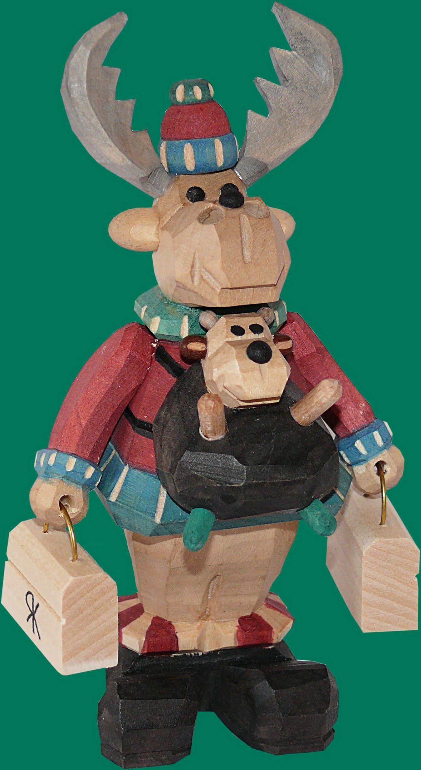 Holzfigur Elch Mutter mit Baby geschnitzt Höhe 16cm NEU Figuren Schnitzen Holz