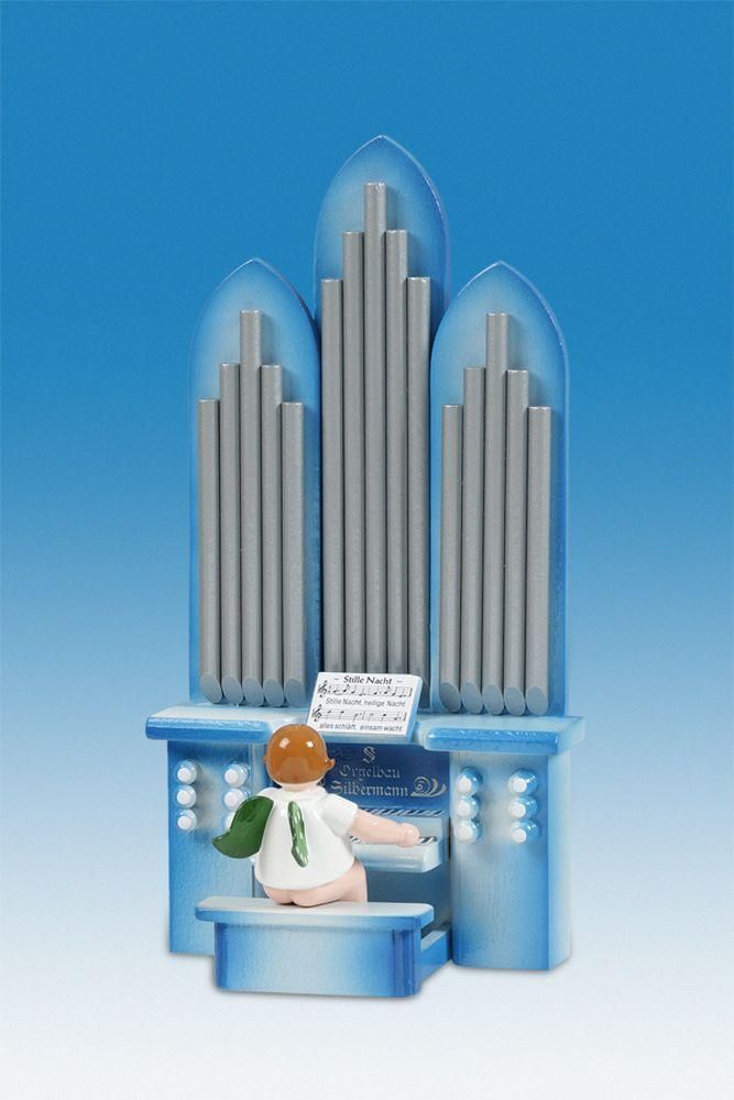 Holzfigur Engel an der Orgel ohne Krone Höhe 6cm NEU Holzengel Instrument Seiffen
