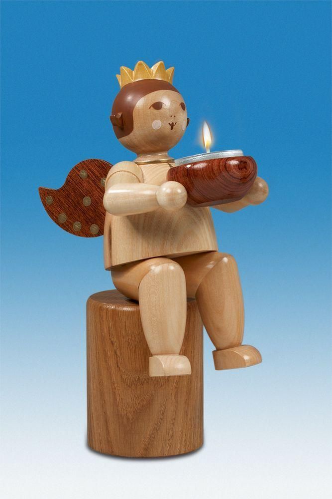 Holzfigur Engel Kantenhocker mit Krone sitzend mit Teelicht natur Höhe 22cm NEU H