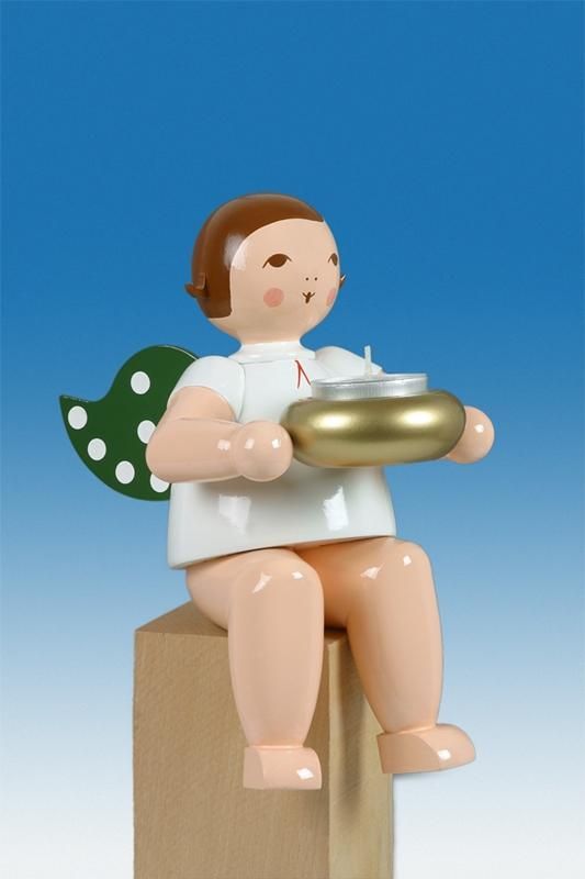 Holzfigur Engel Kantenhocker sitzend mit Teelicht ohne Krone Höhe 22cm NEU Holzen