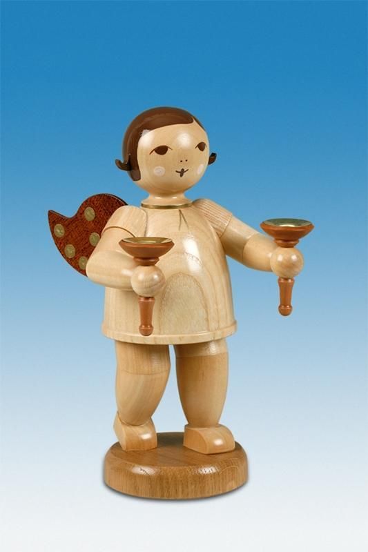 Holzfigur Engel mit 2 Tüllen und Krone Höhe 22cm NEU Holzengel Instrument Seiffen