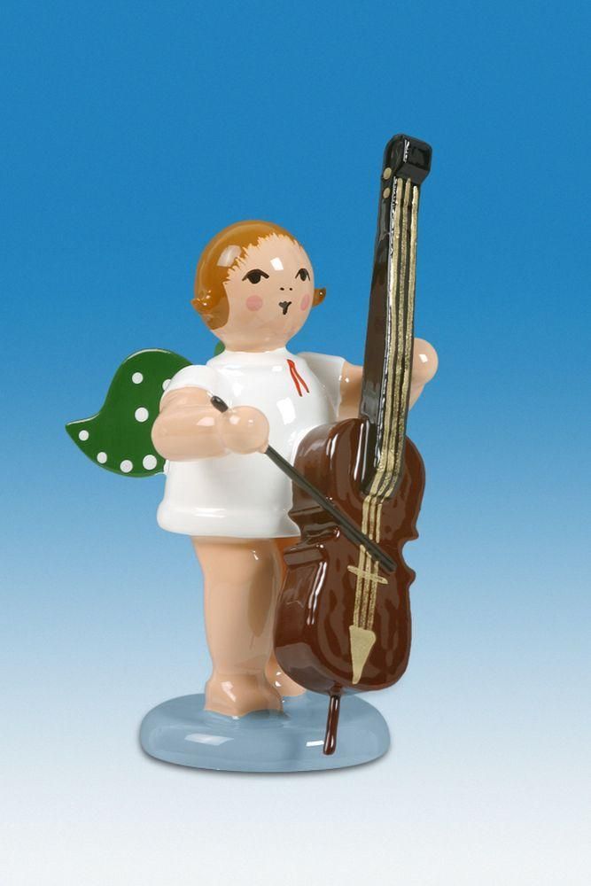 Holzfigur Engel mit Bassgeige und Krone Höhe 6cm NEU Holzengel Instrument Seiffen