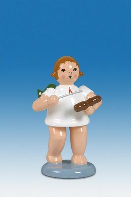 • Holzfigur Engel mit Holzblocktrommel ohne Krone Höhe 6cm NEU Holzengel Instrument
