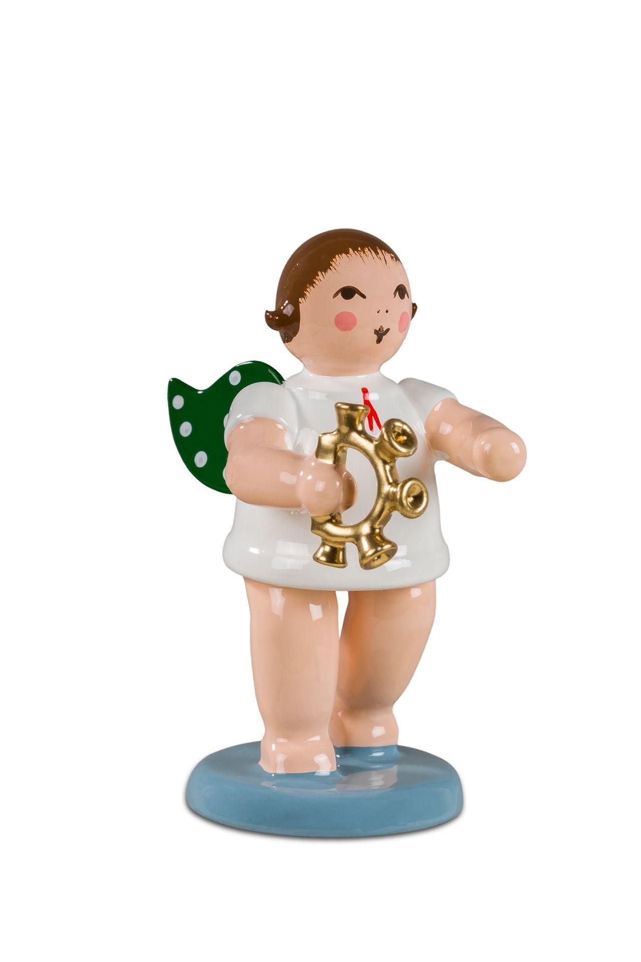 Holzfigur Engel mit Glockenkranz und Krone Höhe 6cm Engel mit Glockenkranz und Kr