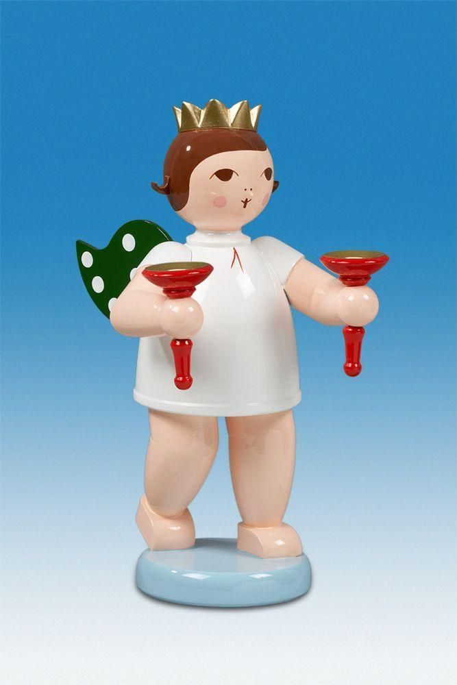 Holzfigur Engel mit Krone und 2 Tüllen Höhe 22cm NEU Holzengel Instrument Seiffen