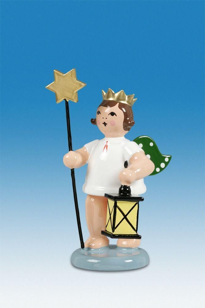 Holzfigur Engel mit Stern Laterne und Krone Höhe 6cm NEU Holzengel Instrument Sei