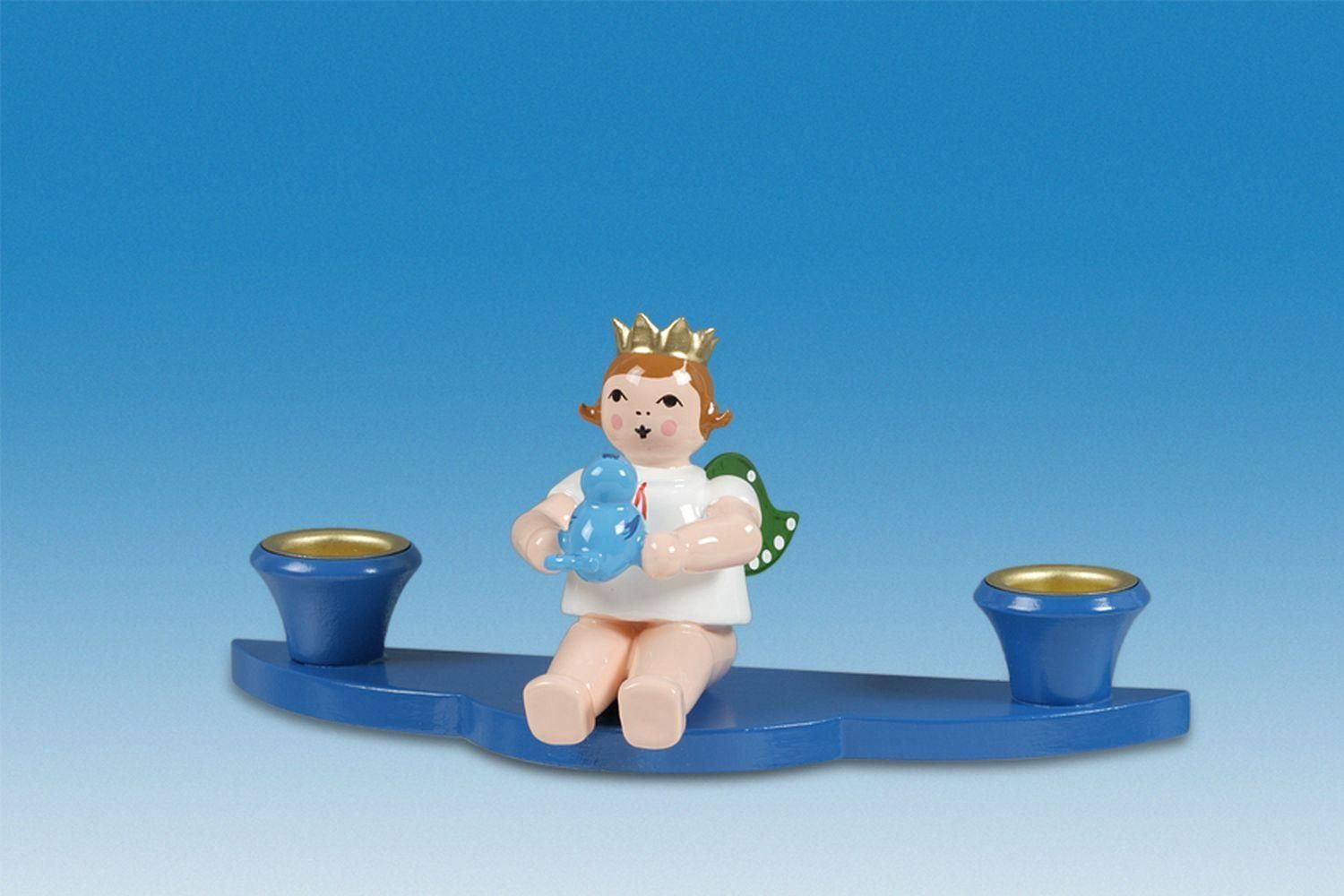 • Holzfigur Engel auf Schaukelpferd mit Krone natur Höhe 6,5cm NEU Holzengel Instru