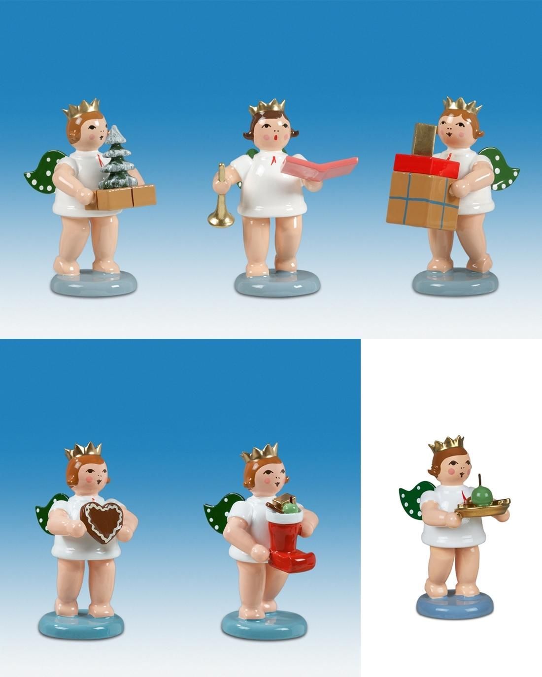 Holzfigur Engelfiguren mit Geschenk 6-teilig ohne Krone Höhe 6cm NEU Holzengel In