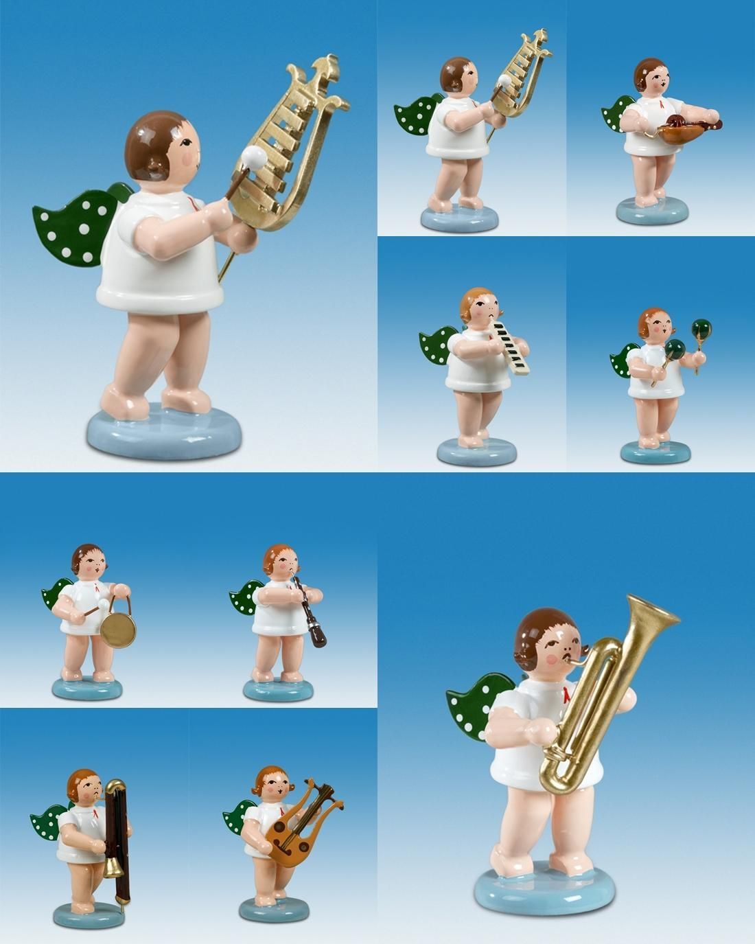 Holzfigur Engelmusikanten 10-teilig und Krone Höhe 6cm NEU Holzengel Gottesbote