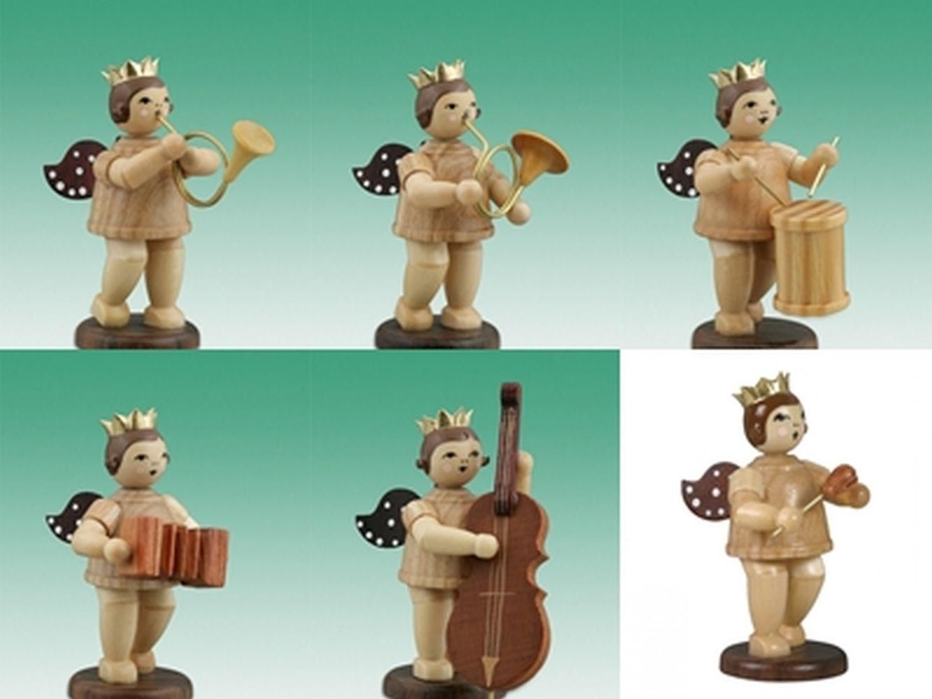 Holzfigur Musikantenengel 6tlg. mit Krone natur Höhe 6,5cm NEU Holzengel Instrume