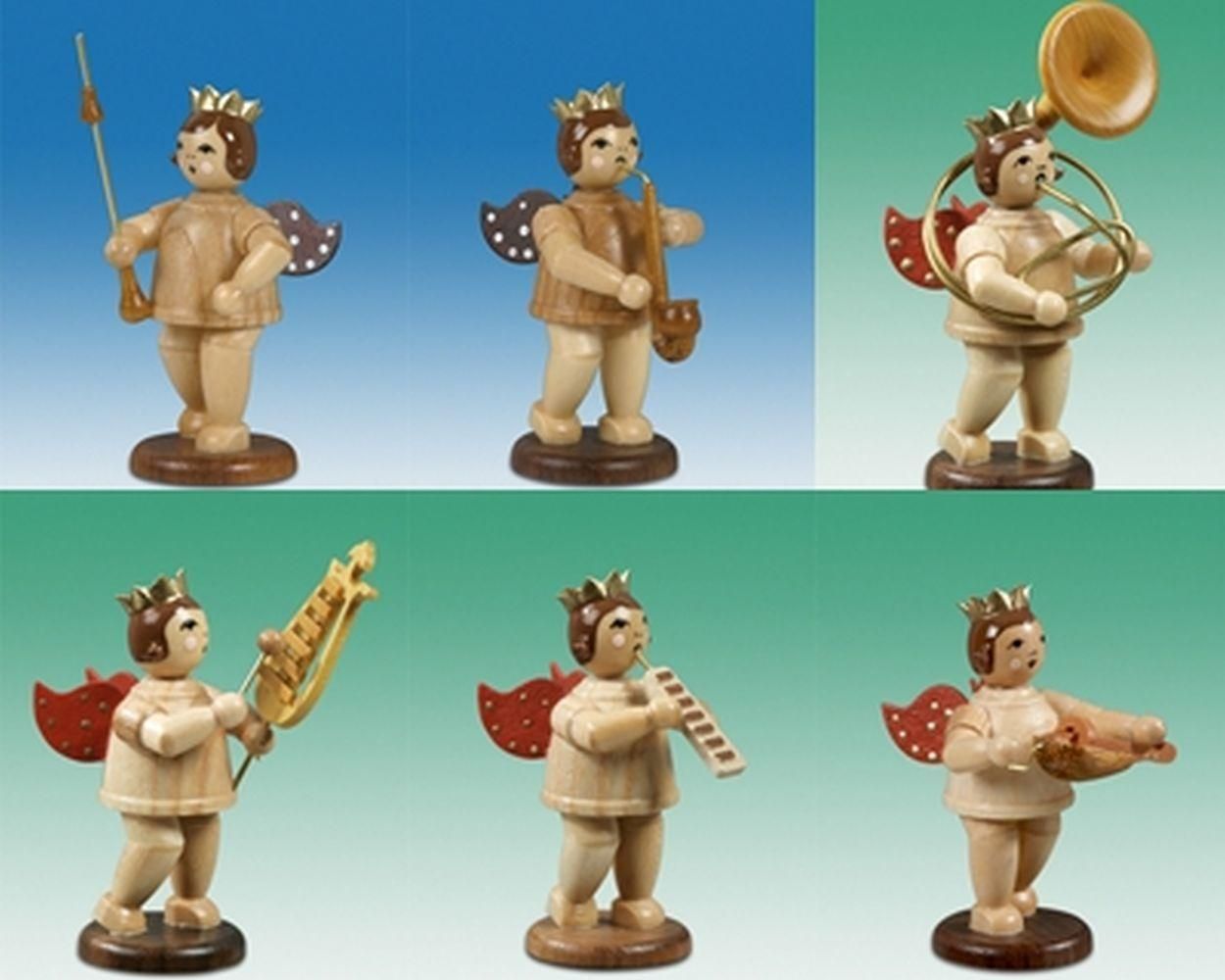 Holzfigur Musikantenengel 6tlg. mit Krone natur Höhe 6,5cm NEU Holzengel Instrume