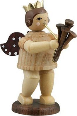 • Holzfigur Musikantenengel mit Hifthorn und Krone natur Höhe 6cm NEU Holzengel Ins