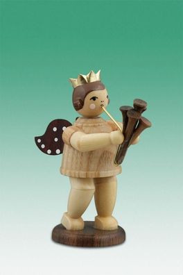 • Holzfigur Musikantenengel mit Tenorhorn und Krone natur Höhe 6,5cm NEU Holzengel