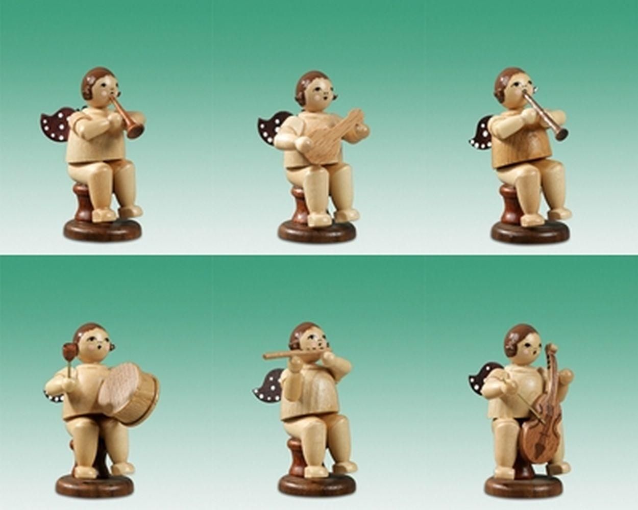 Holzfigur Musikantenengel 6tlg. sitzend natur ohne Krone Höhe 6,5cm NEU Holzengel