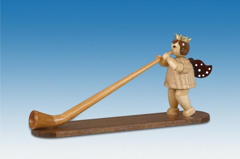 Holzfigur Musikengel mit Alphorn und Krone Höhe 6,5cm NEU Holzengel Instrument