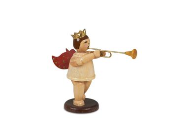 • Holzfigur Musikengel mit Aidatrompete und Krone Höhe 6,5cm NEU Bote Gottes