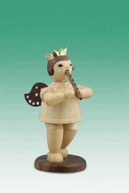 • Holzfigur Musikengel mit Blockflöte und Krone Höhe 6,5cm NEU Holzengel Instrument