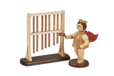 • Holzfigur Musikengel mit Röhrenglockenspiel und Krone Höhe 6,5cm NEU Bote Gottes