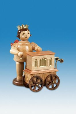 • Holzfigur Musikengel mit Drehorgel und Krone Höhe 6,5cm NEU Holzengel Instrument