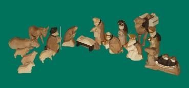 Holzfiguren Krippenfiguren 16-tlg braun Höhe 6cm NEU Figuren Schnitzen Holz Wald