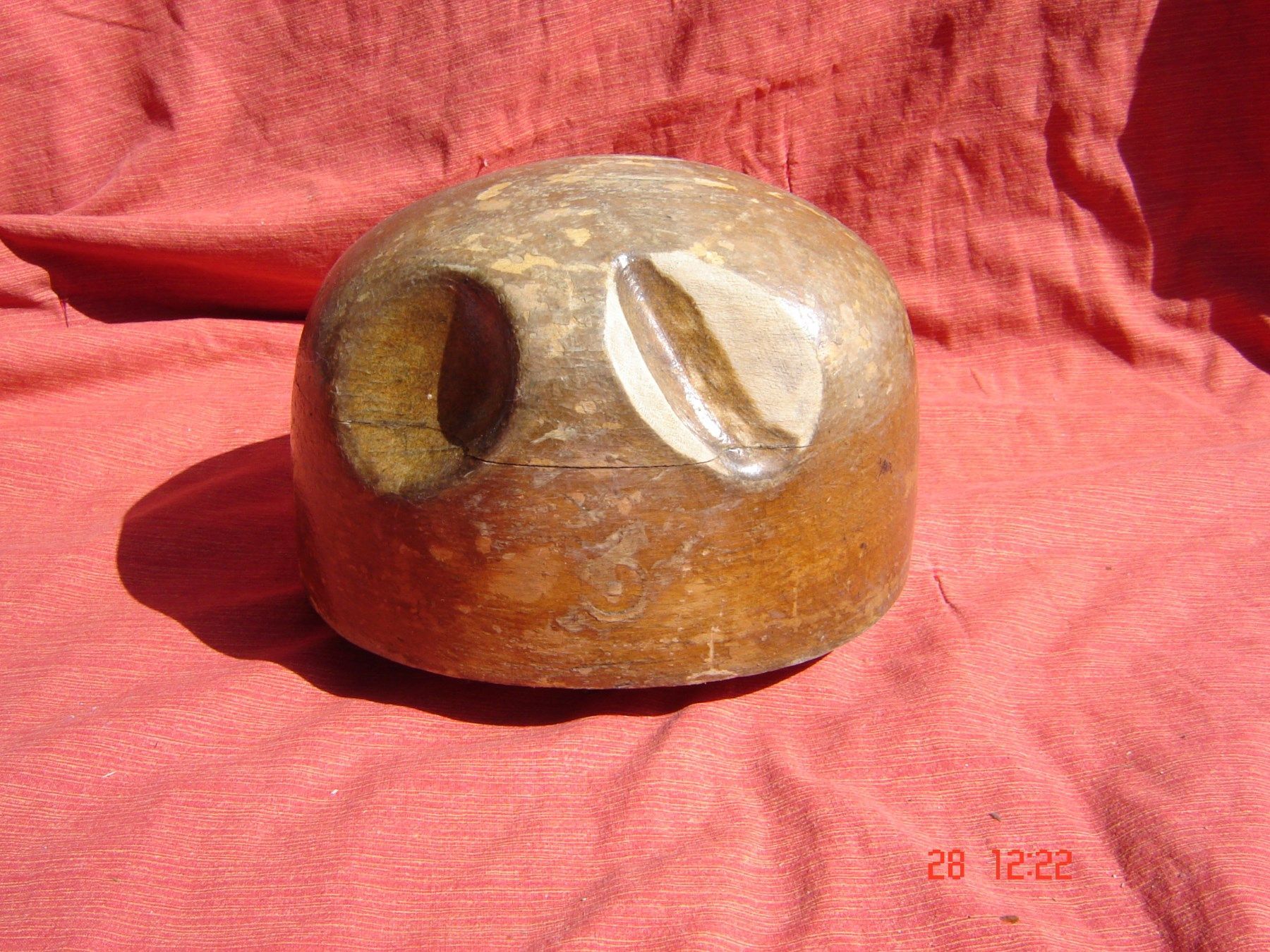 Holzform Hutform Holzkopf Damenhut Holz benützt unbeschädigt hatblock 1661-1