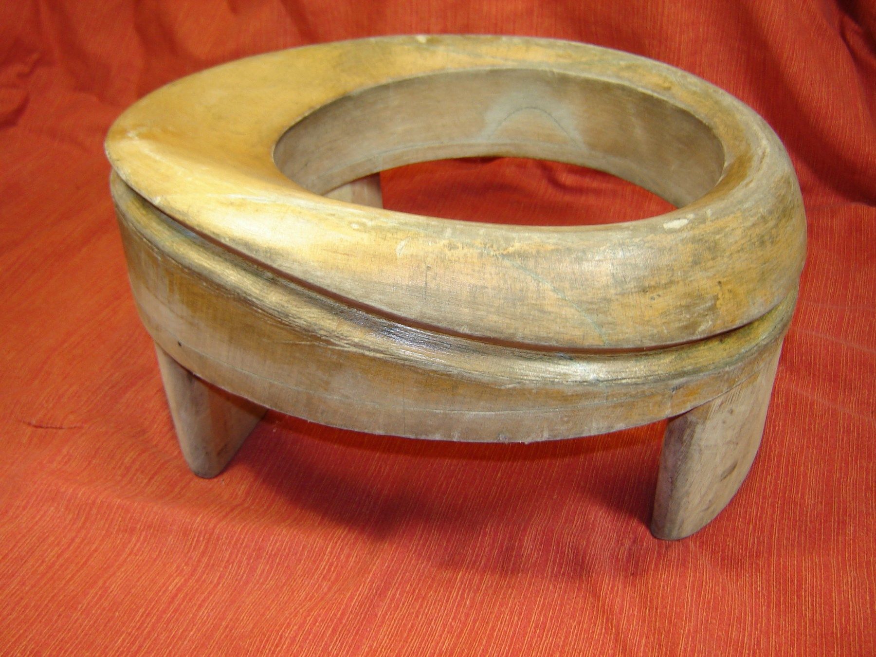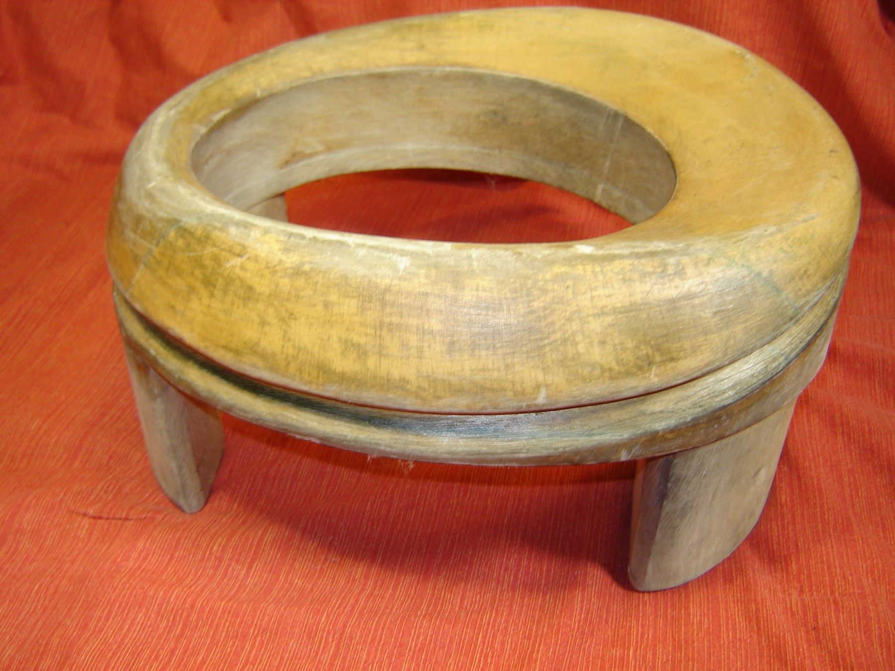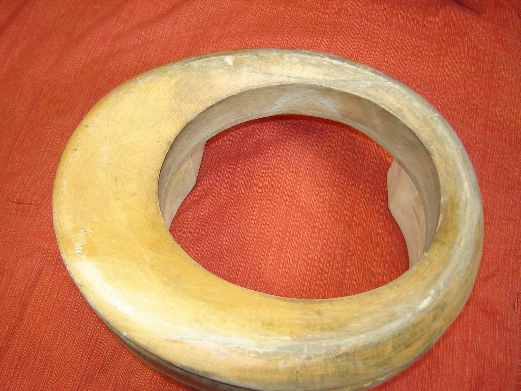 wir brauchen ein bißchen Platz , alles was doppelt ist, muß raus ich biete hier einen Damenhutrand Matritze mit Füßchen aus Holz schöne Damenhut Rand Form , der Rand ist schwungvoll asymetrisch wurde benützt der Rand ist soweit in Ordnung der Lack ist dünn Maße : vorne ca 7,5 cm und hinten 6,5 cm br