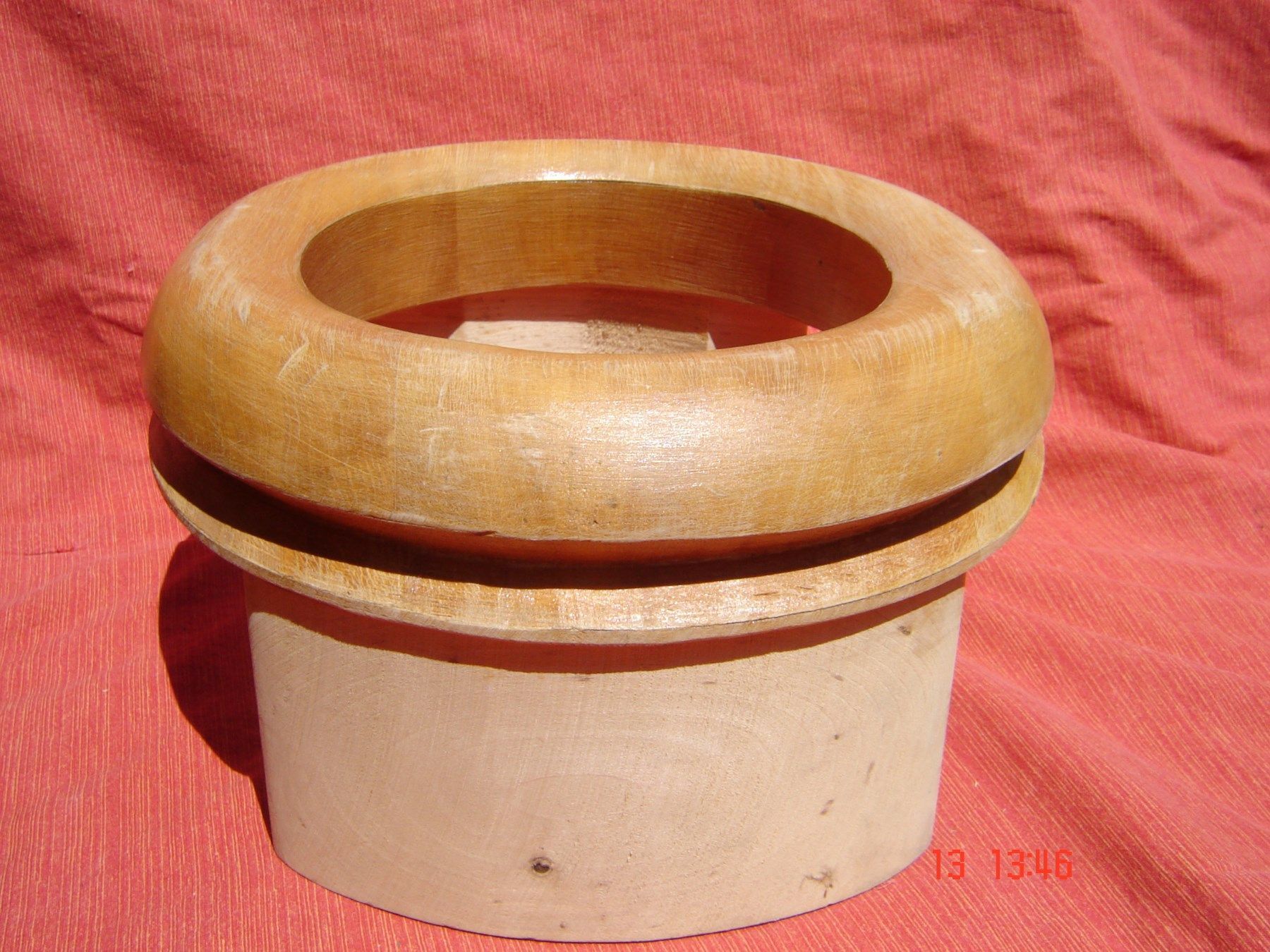 wir brauchen ein bißchen Platz , alles was doppelt ist, muß raus ich biete hier einen Damenhutrand Matritze mit Füßchen aus Holz nagelneuer schöner Damenhut Rand Matritze mit Füßchen, der Rand ist rundum nach oben und wurde so gut wie nicht benützt , sieht aus wie neu der Rand ist top in Ordnung Maß