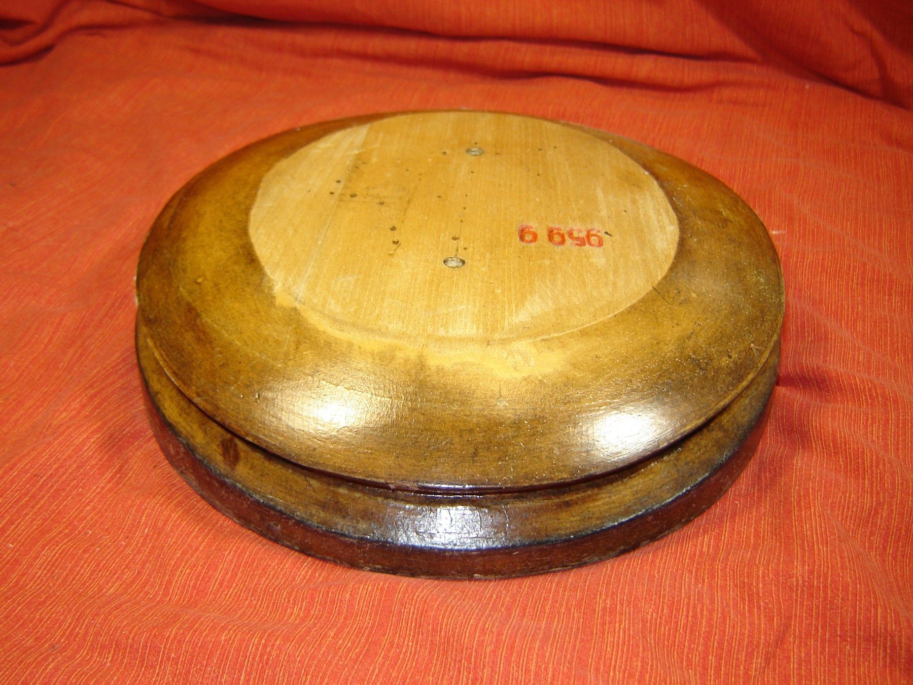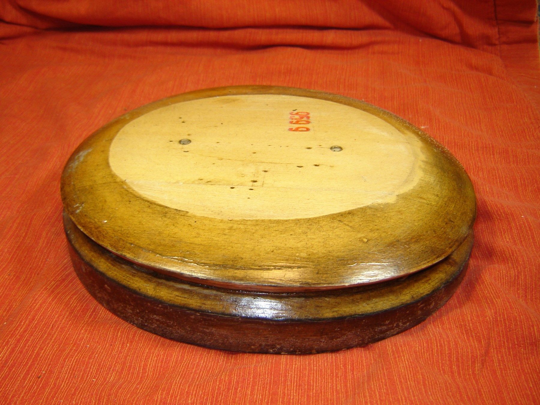 . wir brauchen ein bißchen Platz , alles was doppelt ist, muß raus ich biete hier einen Sattelrand aus Holz flache Form sehr vielseitig zu verwenden für modische Damen oder Herren Hüte der Rand wurde benützt , ist soweit in Ordnung der Lack ist gut Maße : vorne ca 5 cm und hinten 3,5 cm breit , Maße