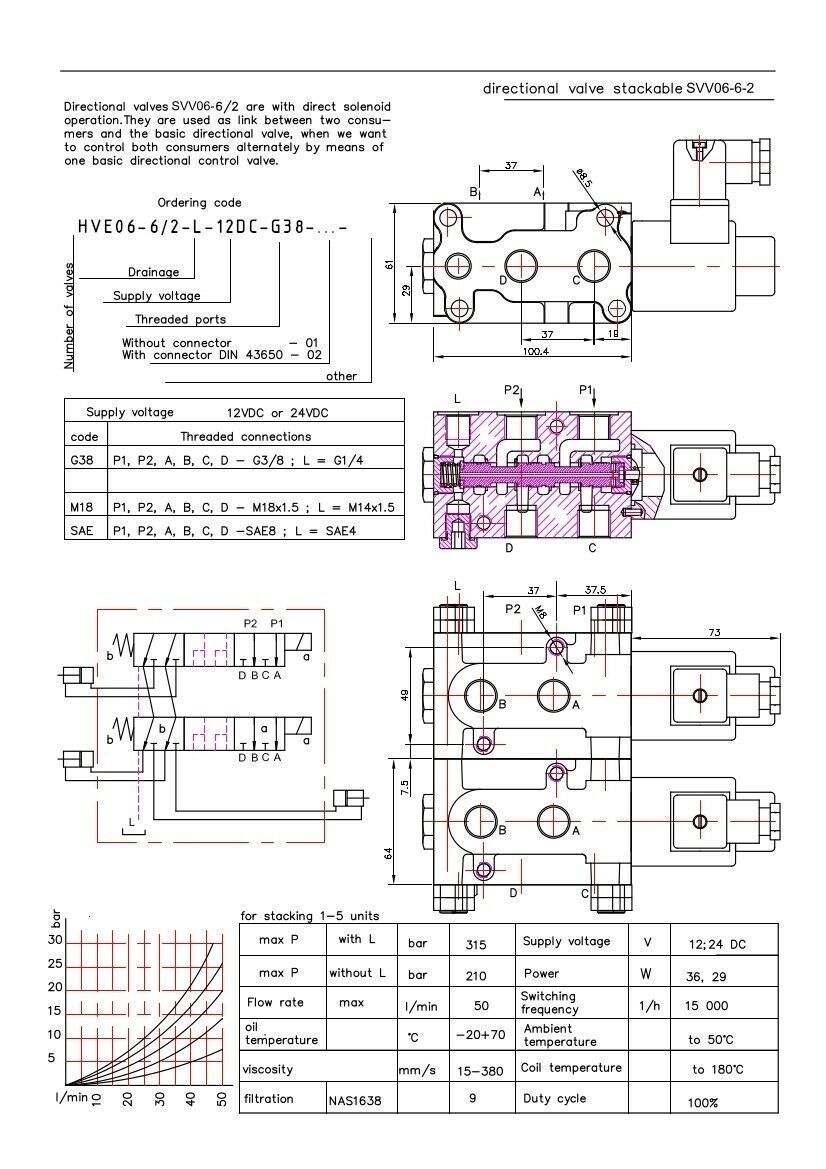 Holzhäuer Hydraulikventil flanschbar 18/8 Wege Wechselventil 50L 24 V