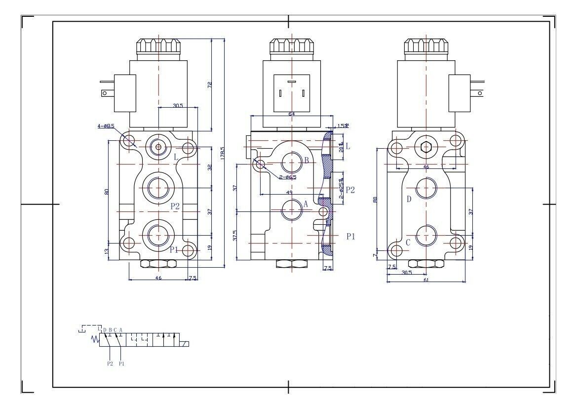 Hydraulikventil Wegeventil Steuerventil NG4 flanschbar 8/3 Wege 20 L 12 V